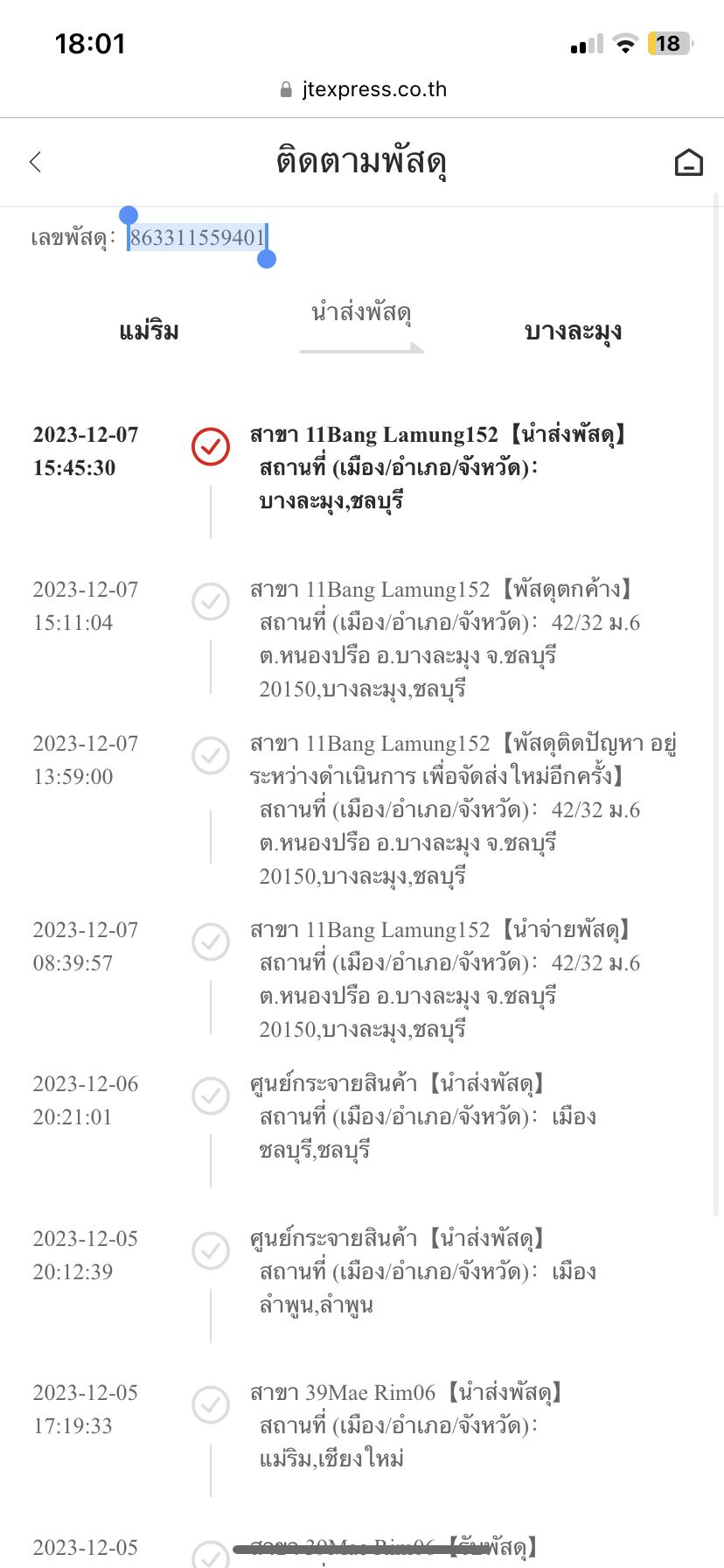 อยากทราบว่าของจะถึงเมื่อไหร่ พอดีของที่สั่งมาจำเป็นต้องใช้วันพรุ่งนี้แต่มาทำงานผิดพลาด ของต้องไปที่จุดกระจายสินค้าอีกรอบ แล้วประเด็นของที่มามันจำเป็นต้องใช้ร่วมกิจกรรมกับทางวิทยาลัยมันมีผลต่อเกรด สั่งนานแล้วด้วยวันนี้ควรจะได้รับแล้วแต่เพราะเป็นการทำงานผิดพลาดของขนส่ง? สามารถไปเอาเองได้ไหมคะไม่อยากรอแล้ว ได้แต่ดูสถานะๆ ดูจนเป็นไงอะส่งผิด? ความจริงถ้าโทรมาแจ้งได้จะรีบไปรับเลยไม่ต้องส่งไปศูนย์ให้ยุ่งยากฉันได้ของเสร็จจบ ขนส่ง J&T exepress