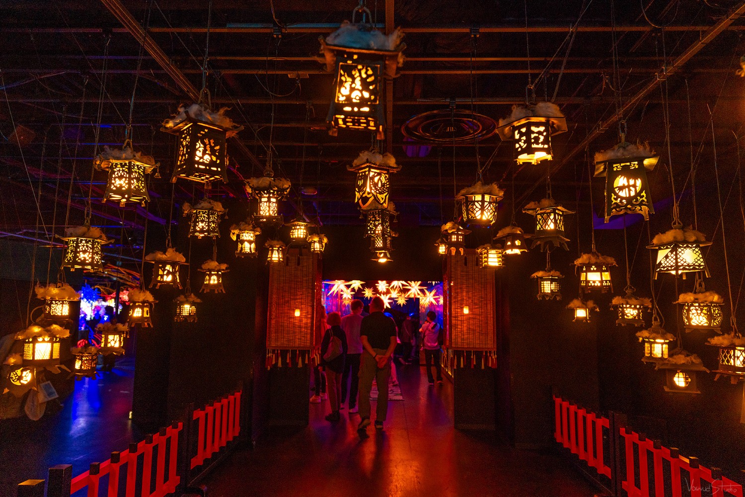 ทางเข้า เมื่อเข้ามาจะพบกับโคมไฟห้อยอยู่ด้านบนต้อนรับเราเข้างานอย่างสวยงาม