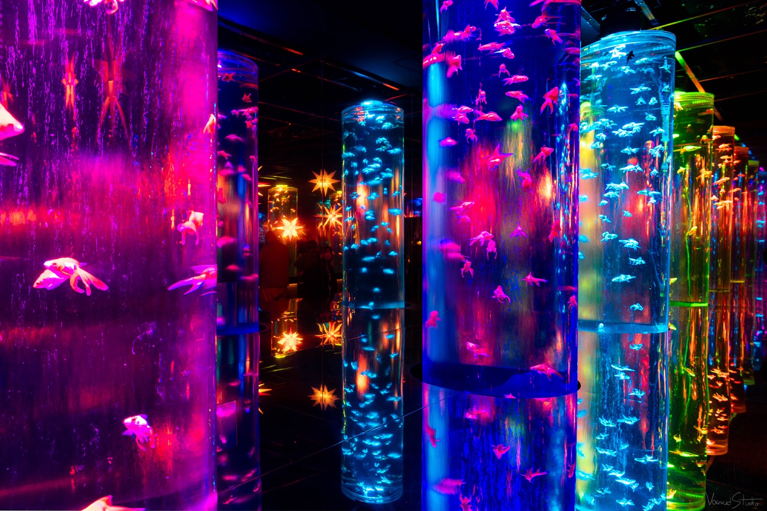 Goldfish Forest ปลาทองนับไม่ถ้วน ได้แหวกว่ายอยู่ในเสาน้ำ และถูกรายล้อมด้วยฟองอากาศที่อาบไปด้วยแสงสีอันตระการตา ตรงนี้ก็เป็นอีกจุดที่สวยมากๆครับ