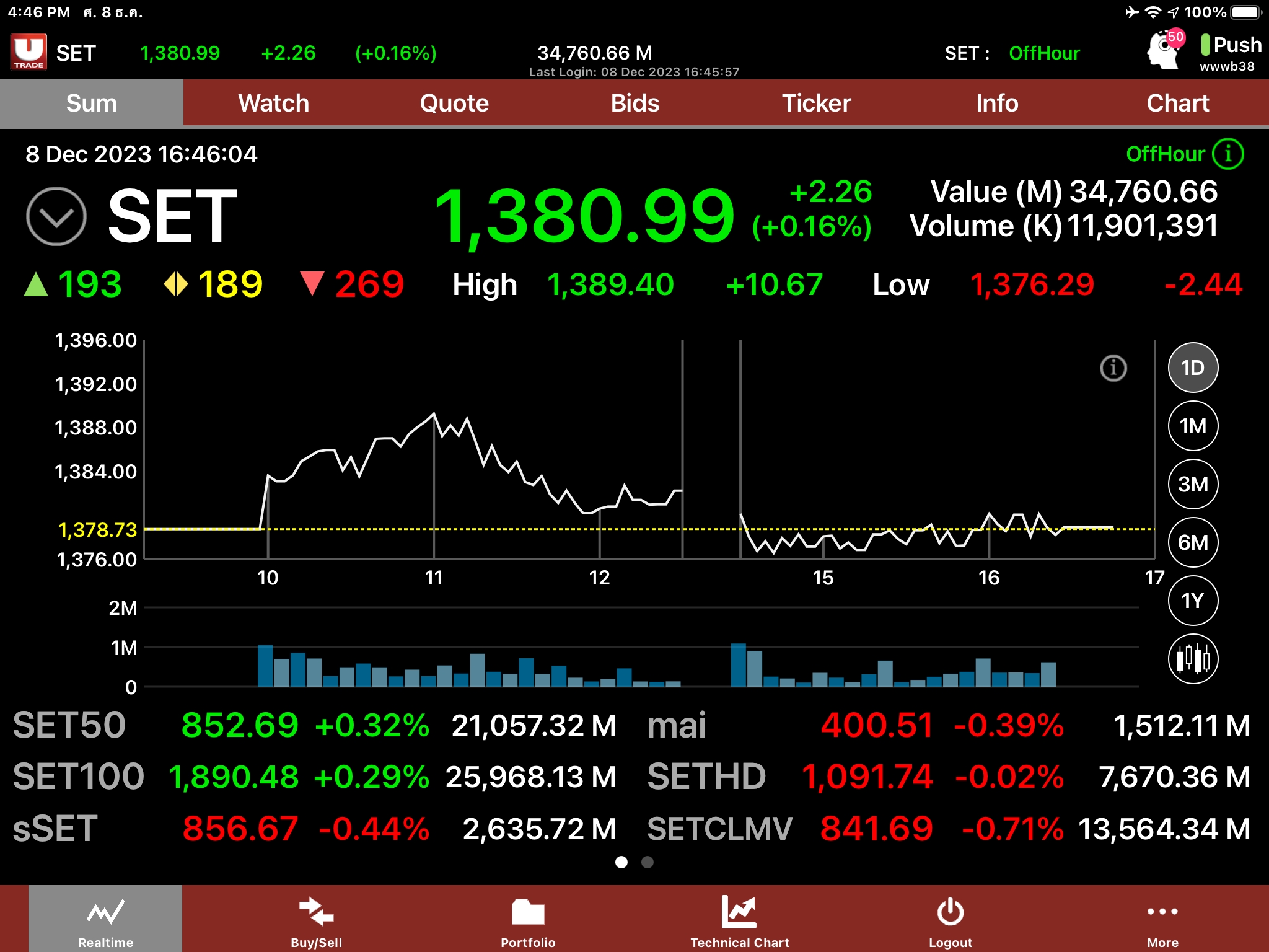 8.12.2023 set summary. ต่างชาติ sell. 1,303.63