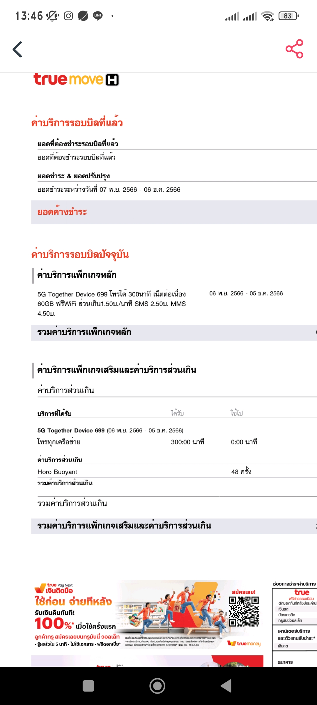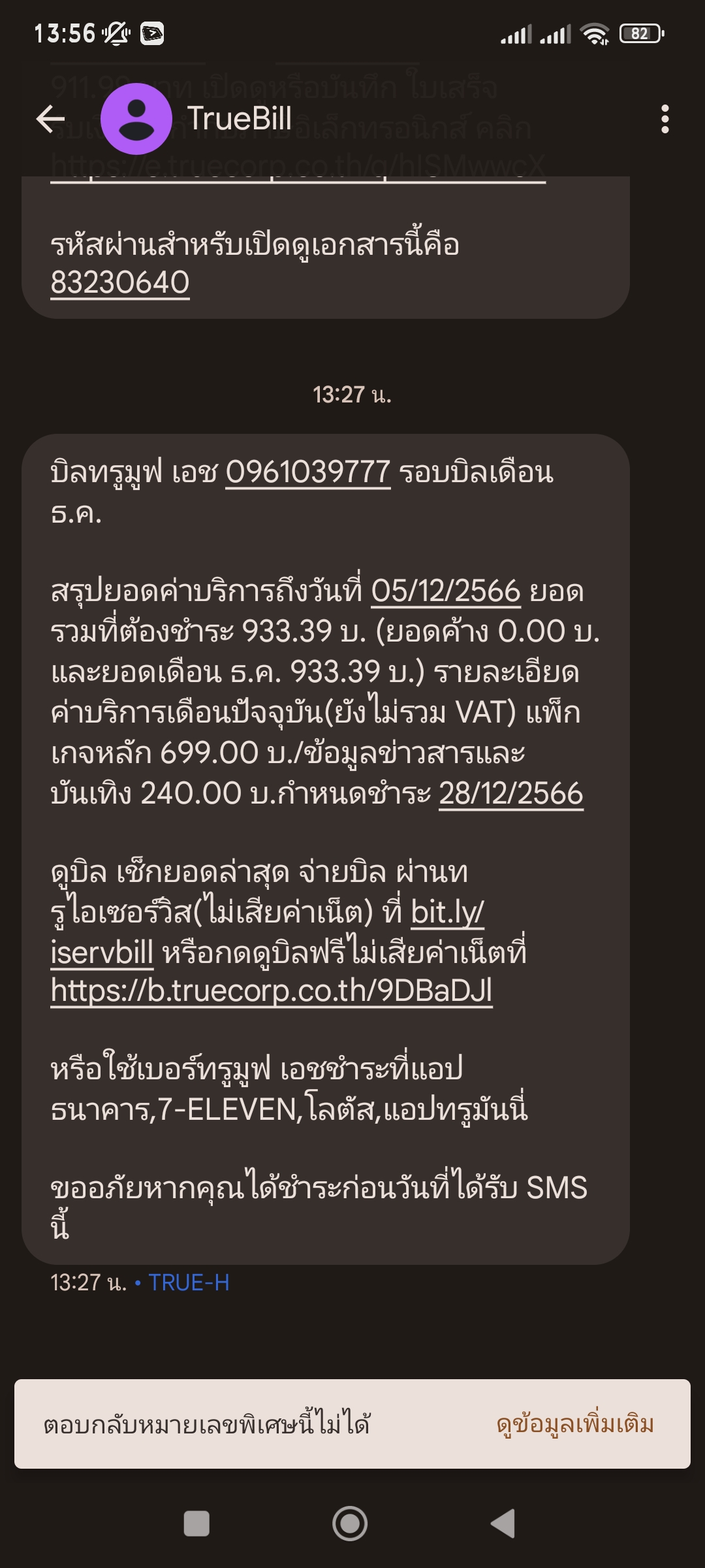 เงินในเบอร์ ทรูหาย แบบไม่มีข้อความเตือน