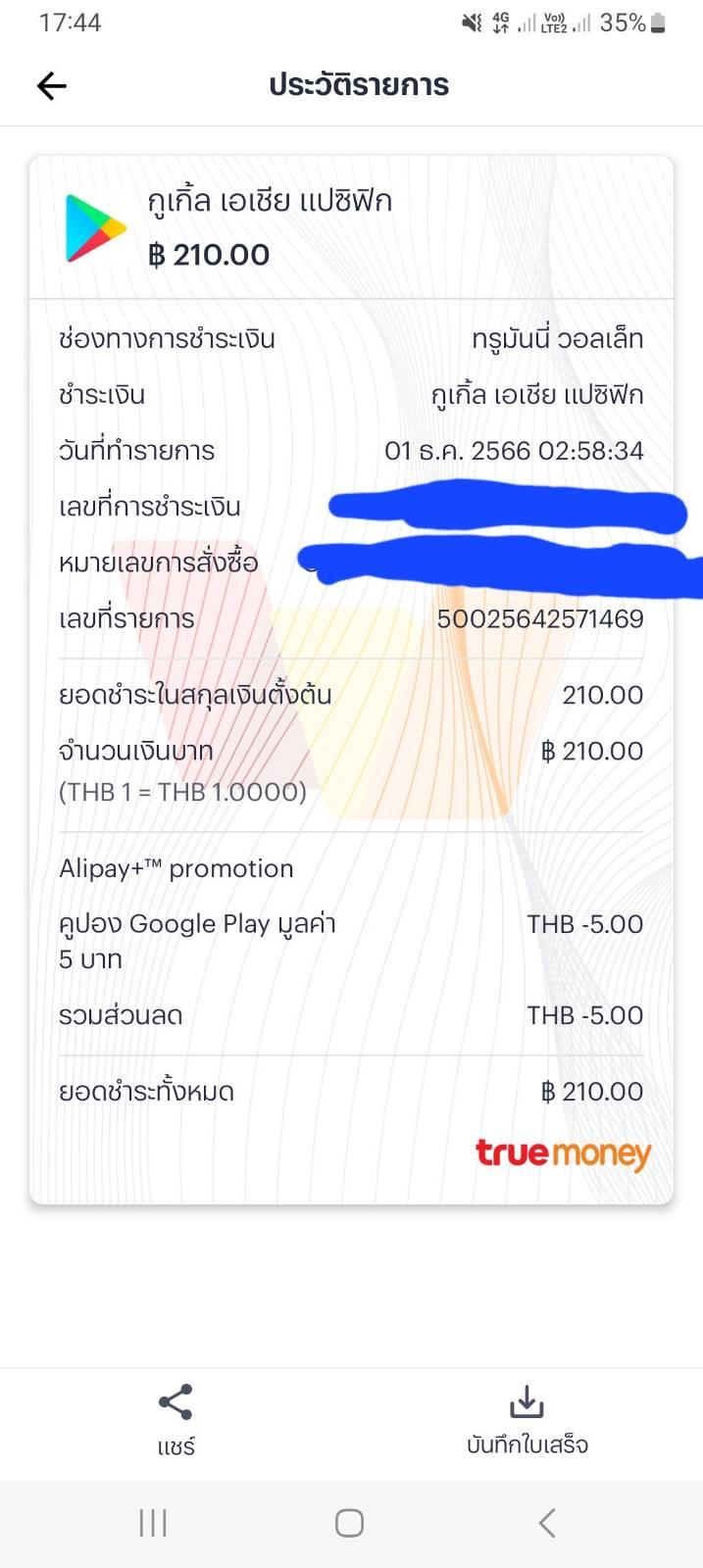 ขอคืนเงินไม่ได้หาว่าผมฉ้อโกง google payment true money