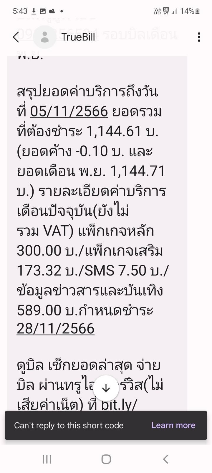 โดนเรียกเก็บค่าบริการแพ็กเกจเสริมและค่าบริการส่วนเกิน เป็นเงินเกือบ 1400 บาท แต่วันนี้เข้าไปสอบถามเจ้าหน้าที่ของทรู แจ้งว่าเป็นเงินที่ต้องชำระ เพราะเป็นค่าใช้จ่
