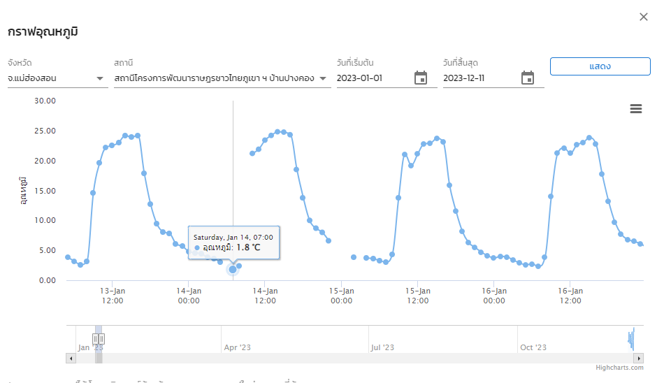 ก็เลยอยากเขียนเรื่องสถานที่อากาศหนาว ๆ นอกเหนือจากดอยอินทนนท์ จริงๆมีอีกที่นะครับ บ้านปางคอง แม่ฮ่องสอน อย่างเช้าวันนี้ 13.0 องศาฯ ใกล้เคียงดอยอินทนนท์ หากย้อนกลับไปดู ช่วง ม.ค. 2023 มีวันนึง 1.8 องศาฯ สถานที่นี้ผมกำลังศึกษาตามอากาศอยู่ เพราะเป็นจุดที่สูงราว ๆ 1,200-1,350 เมตร ด้วยความสูงที่ทำให้หนาวแล้ว แต่ด้วยที่สภาพเป็นหุบเขาบนภูเขาสูง เลยทำให้เกิดแอ่งเย็น ในวันที่ 14 ม.ค. 2023 วันนั้น ดอยอินทนนท์ 6.0 องศาฯ กิ่วแม่ปาน 7.3 องศาฯ วันนั้นบ้านปางคองหนาวกกว่าดอยอินทนนท์ ทั้งๆที่อยู่สูงน้อยกว่า จริงๆแล้ว กิ่วแม่ปานสูงน้อยกว่ายอดดอยแต่อุณหภูมิกลับเฉลี่ยต่ำกว่า ปีที่แล้วต่ำสุด 1.0 องศาฯ ใกล้เคียง กับบ้านปางคอง