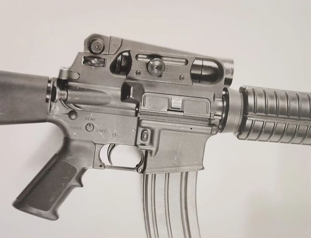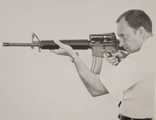 หนึ่งในการทดลอง(ที่ไม่ได้ไปต่อ)ของปืน M16A2 ติดกล้องเล็ง 3x20 ของ Colt ที่ด้านข้างของหูหิ้ว