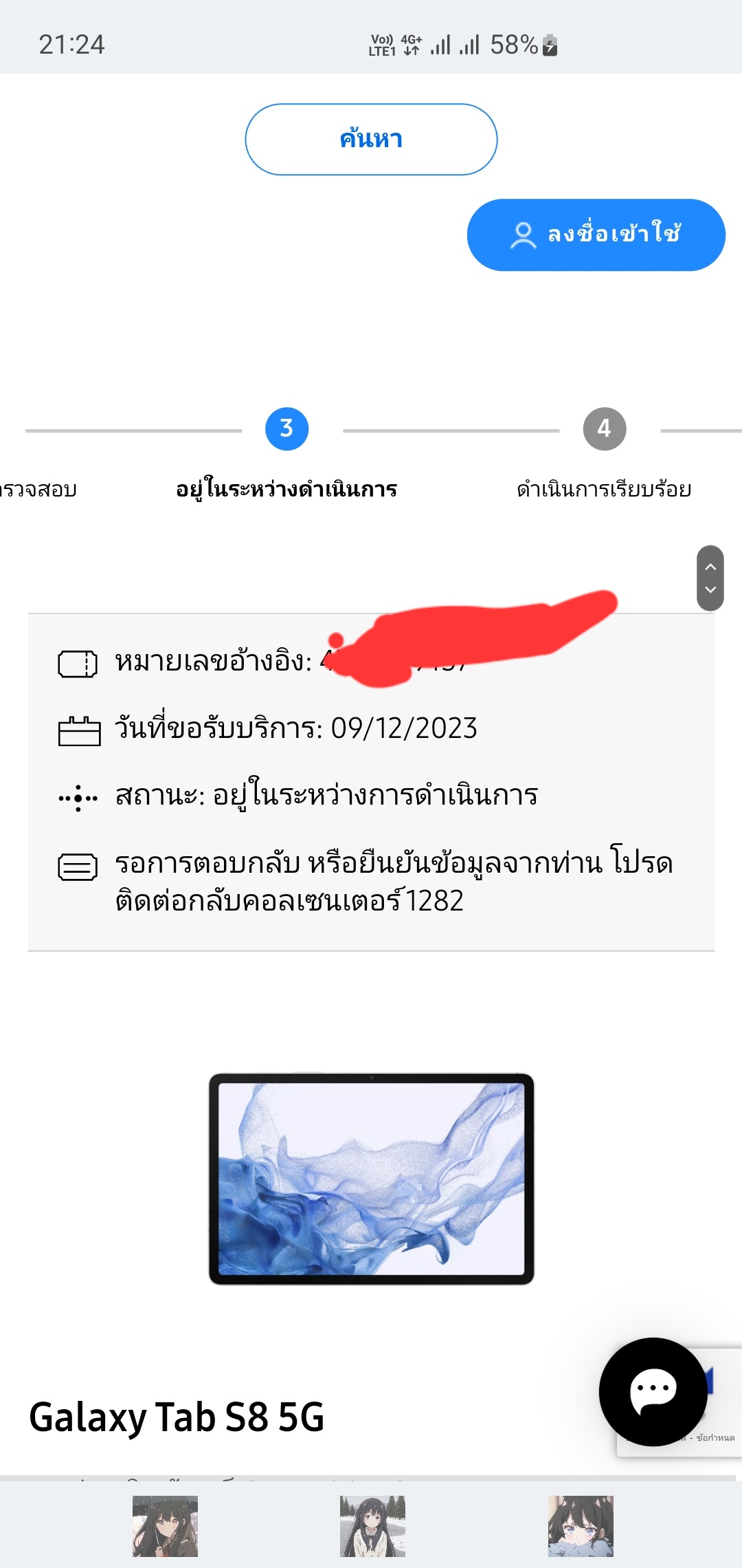 ยื่นเรื่องขอคืนค่าซ่อมหน้าจอซัมซุงกับทางสภาองค์กรผู้บริโภค วันที่ 6/10/68 มีข้อความตอบกลับจากซัมซุงว่าเอกสารไม่เพียงพอ เนื่องจากทำใบเสร็จค่าซ่อมหาย ตอนยื่นเรื่องส่งเป็นใบส่งซ่อมพร้อมแนบสลิปการโอนเงินไ