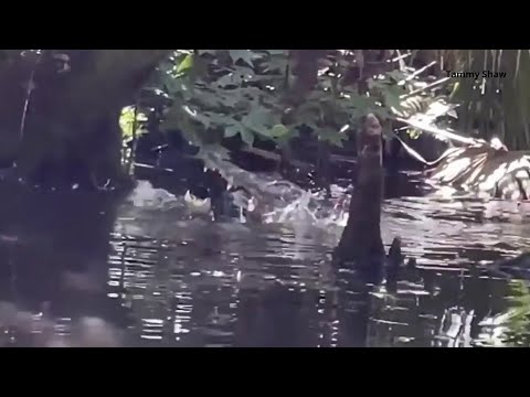 ในวิดีโอมีจระเข้ตัวใหญ่โผล่ขึ้นมา