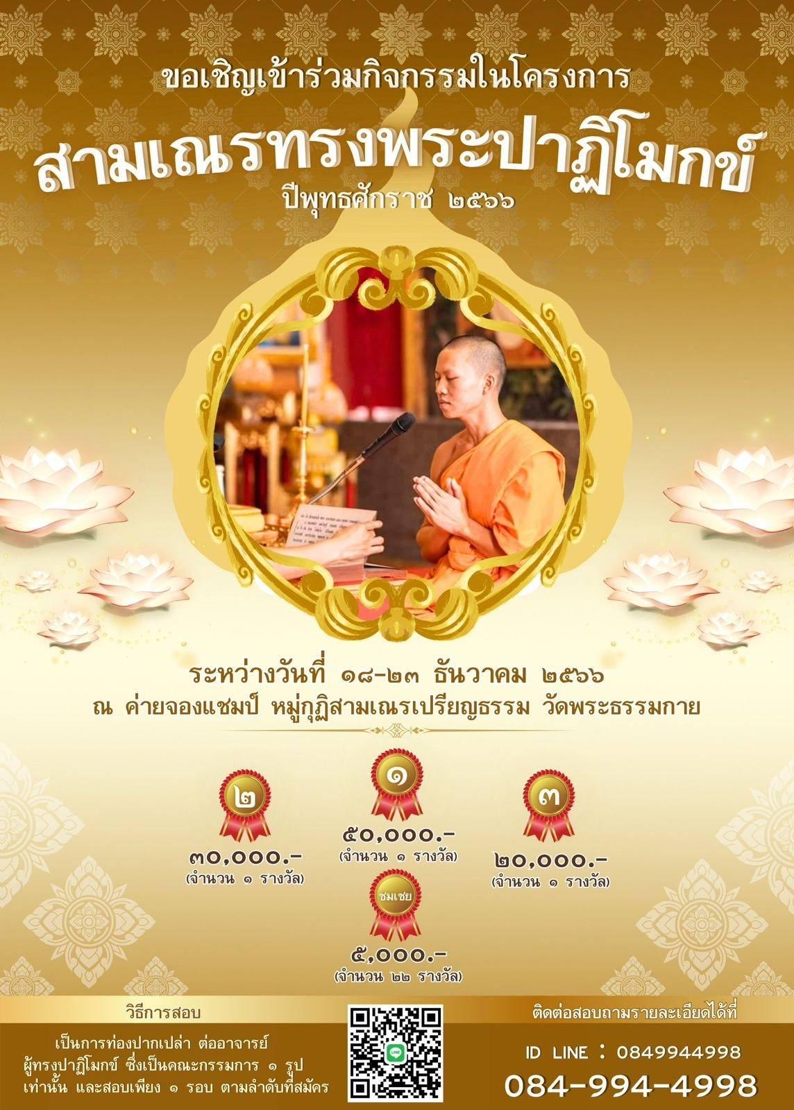 วัดพระธรรมกาย ปทุมธานี จะจัดกิจกรรมโครงการ สามเณรทรงพระปาฏิโมกข์ (รุ่นนำร่อง) รับสมัครสามเณรทั่วประเทศ รายละเอียดตามภาพด้านบนหรือ ติดต่อที่โทร.0849944998 (ID Line เดียวกันครับ)