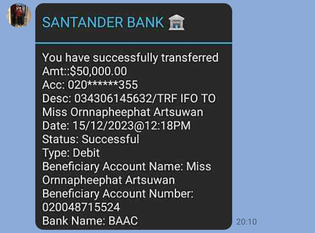 เหตุเกิด ตอน มิถุนา 2023 ครับ ... - อยู่ในกลุ่มนาฬิกา มีคนเปิดประมูลนาฬิกา ผมก็ใส่ตัวเลขลงไป สักพักใหญ่ ก็มีคนทักมา ชื่อ และ รูป profile เหมือน คนที่ post เปิดป