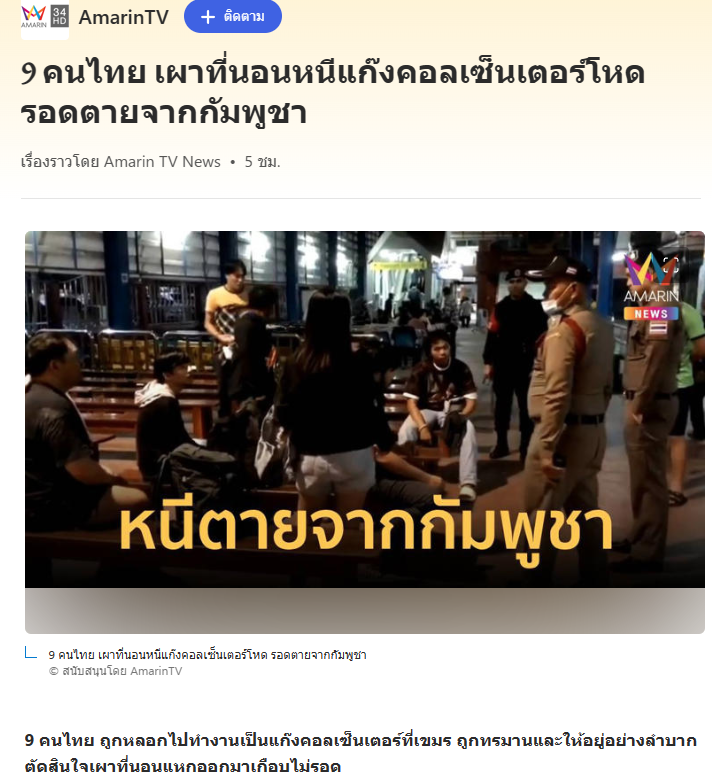 สื่อเกาหลีใต้แฉ แก๊งคอลเซ็นเตอร์จากกัมพูชาเริ่มย้ายฐานมาไทยแล้ว