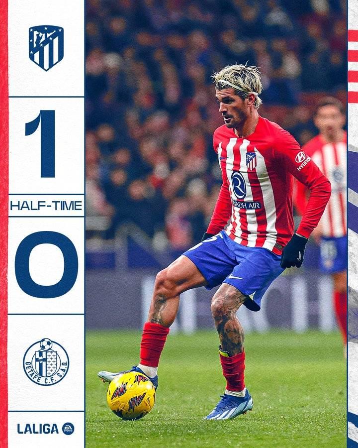 แต่ถึงจะเหลือแค่ 10 คน แต่ก็เป็น Atleti ที่ออกนำก่อนจาก Antoine Griezmann คนเดิม ในนาทีที่ 44'
