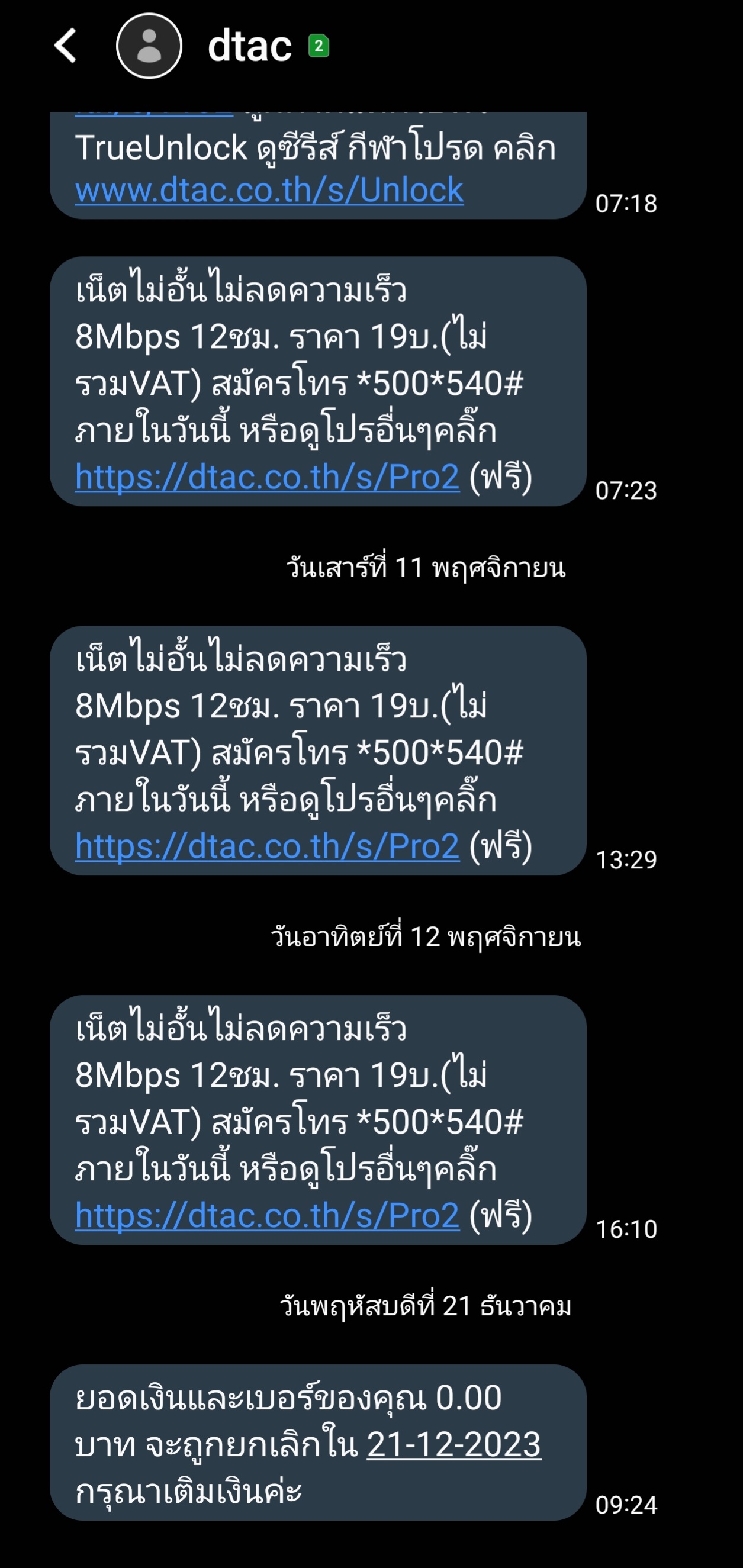 สอบถามหน่อยครับ เดี๋ยวนี้ถ้าเบอร์เติมเงินไม่ได้ใช้นานๆเขาก็จะตัดเบอร์เราปกติใช่ไหมเพราะเคยได้ยินประกาศจากทางกสทช.มารอบนึงว่าผู้ให้บริการไม่มีสิทธิ์ตัดเบอร์ของเราทิ้ง แต่วันนี้ได้รับข้อความจาก Dtac มาแบบนี้ถ้าไม่เติมเงินเขาจะตัดเบอร์เราทิ้งใช่หรือไม่ครับ ถ้าใช่จะได้เติมเงินเข้าไป