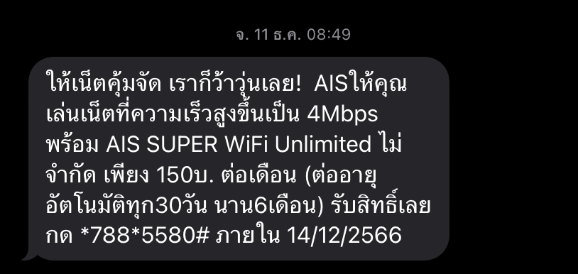 พอดีว่ามีป๊อปอัพขึ้นเตือนในแอพ ais ว่าแพคเกจกำลังจะหมดอายุและจะเปลี่ยนเป็นอันใหม่อัตโนมัติ (แพคเดิมแจ้งว่าไม่มีแล้ว) ซึ่งมีราคาแพงขึ้นแต่เนตช้าลงและจำกัดปริมาณลดลง เลยอยากย้ายค่ายเผื่อว่าจะเจอประสบการ