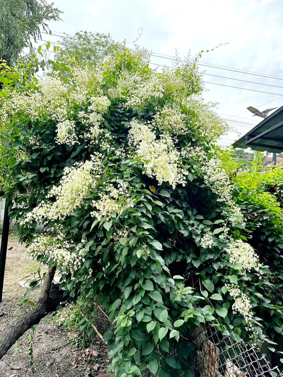 ต้นลดาวัลย์ หรือ ลัดดาวัลย์ ที่บ้านออกดอกในวันคริสต์มาส ขาวโพลนเหมือนหิมะลงสมชื่อ Snow Vine เลยครับ