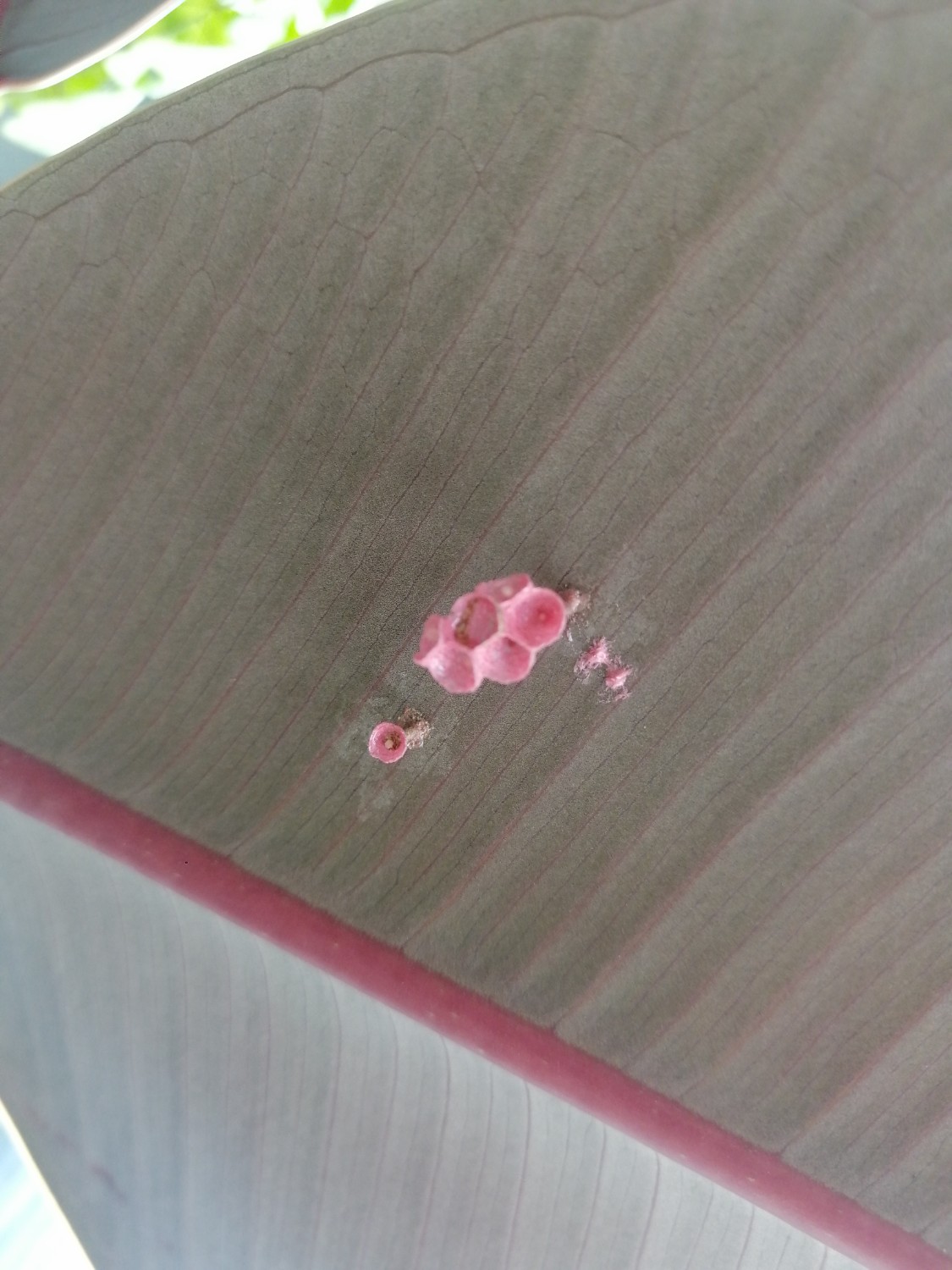 เจอรังนี้ขึ้นอยู่ตรงหลังใบไม้ ใครพอจะทราบไหมคะคือรังของอะไร ทำไมถึงเป็นสีนี้