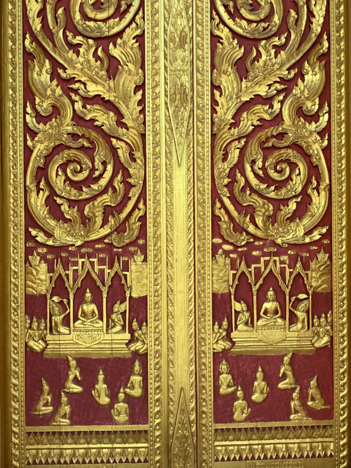 หลักศิลาสลักรูปพระรัตนตรัยแบบมหายาน วัสดุหินทราย ศิลปะลพบุรี อายุสมัย พุทธศตวรรษที่ ๑๗-๑๘ (๘๐๐ - ๙๐๐ ปีมาแล้ว) สมเด็จฯ เจ้าฟ้ากรมพระนครสวรรค์วรพินิต ประทาน เมื่อวันที่ ๒ พฤศจิกายน พ.ศ.๒๔๗๕ หล