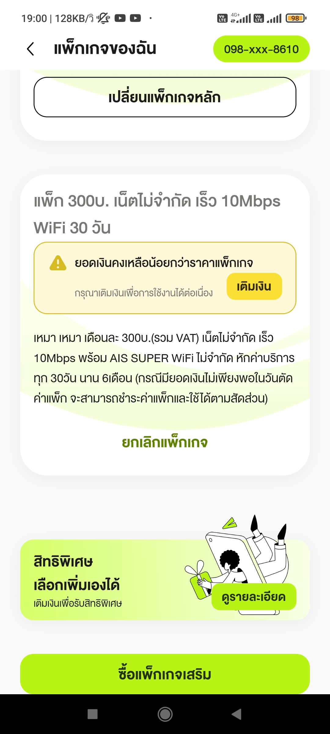เติมเน็ตรายเดือนค่ะ ยอดเช้า แต่เงินโดนตัดไป เน็ตใช้ไม่ได้