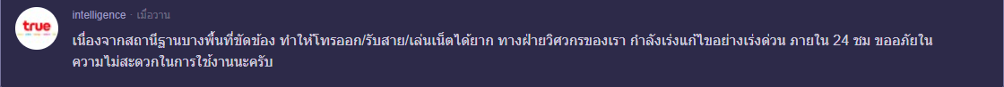 แล้วคำตอบที่ได้คือแบบนี้มาตลอด ฝ่ายวิศวกรกำลังแก้ แก้นานน่ะครับ แสดงว่าวิศวกรที่มีอยู่ทำงานไม่ได้เรื่องแน่นอนครับ แก้ตลอดแต่อันที่จริงคือนอนเล่นอยู่ที่ทำงานไม่ได้ไปแก้ไขอะไรหรอกมั้งครับ ถ้าวันนี้ ขอให้กลับดีภายใน ไม่เกิน 30 นาทีน่ะครับ ไม่งั้นเตรียมตัวเสียผู้ใช้บริการอีก 30+คน ได้เลยครับ จะย้ายไป Ais กันหมด เพราะเจอปัญหาเดียวกันแล้วจะทนเป็นครั้งสุดท้ายไม่เอาแล้วครับกับค่ายที่หลอกลวงผู้ใช้บริการแบบนี้