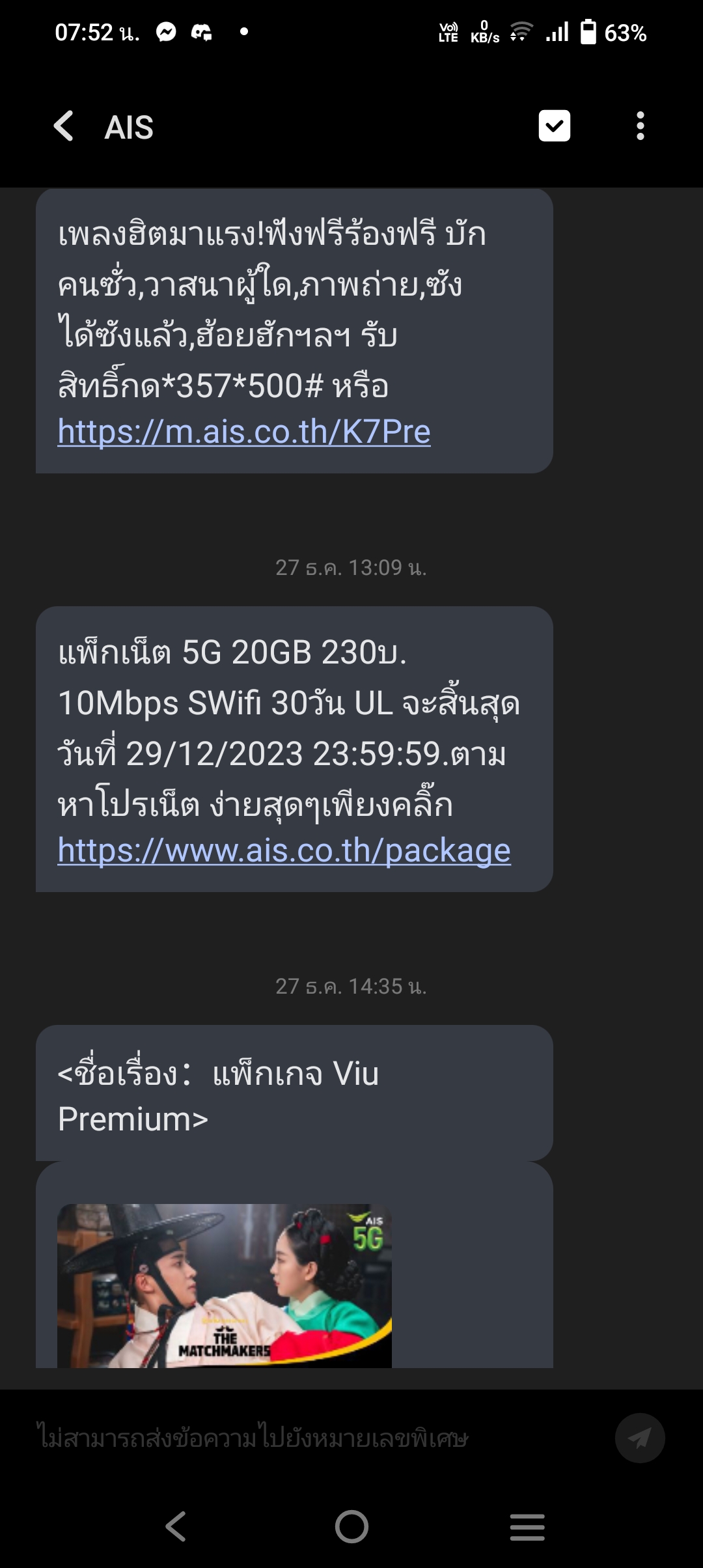 AIS ส่งข้อความยืนยันรับแพ็คเกจฟรี แต่กดรับไม่ได้