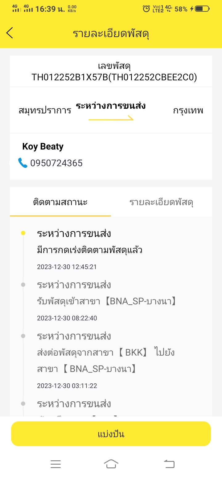 TH040219R5TV0F ค้างที่สาขามา2วันแล้วค่ะ ของค้างอยู่คลอง7ยังไม่นำมาส่งคลอง6เลยค่ะ