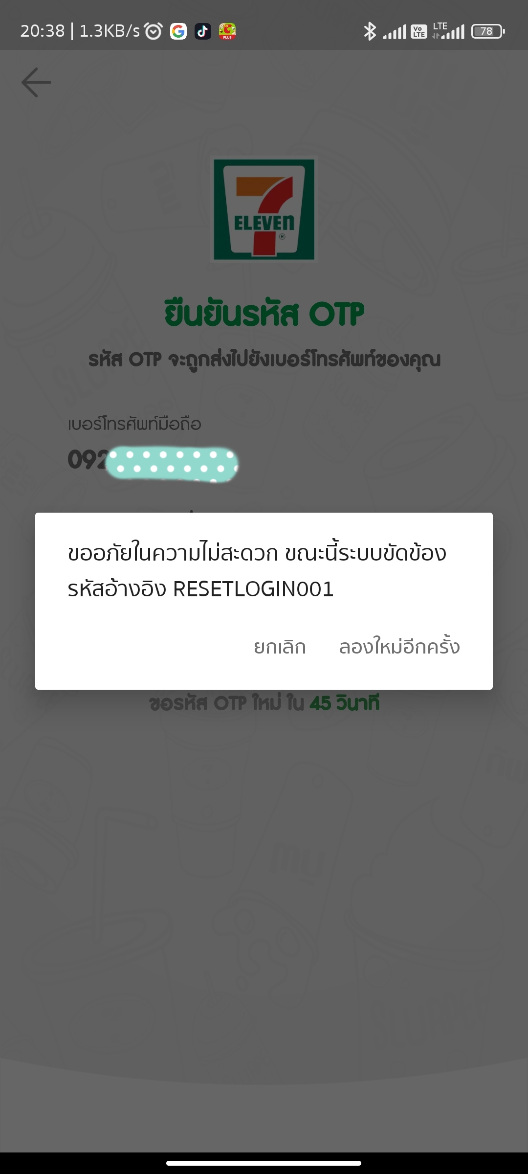 ไม่ได้ใช้งานแอป 7-eleven มาซะนาน ว่าจะล๊อกอินเข้ามาเผาแต้ม All Member วันสิ้นปี พอจะล๊อกอินด้วยเลขบัตรประชาชนกับเบอร์โทรที่สมัคร ดันเข้าใช้งานไม่ได้ตามรูปนี้