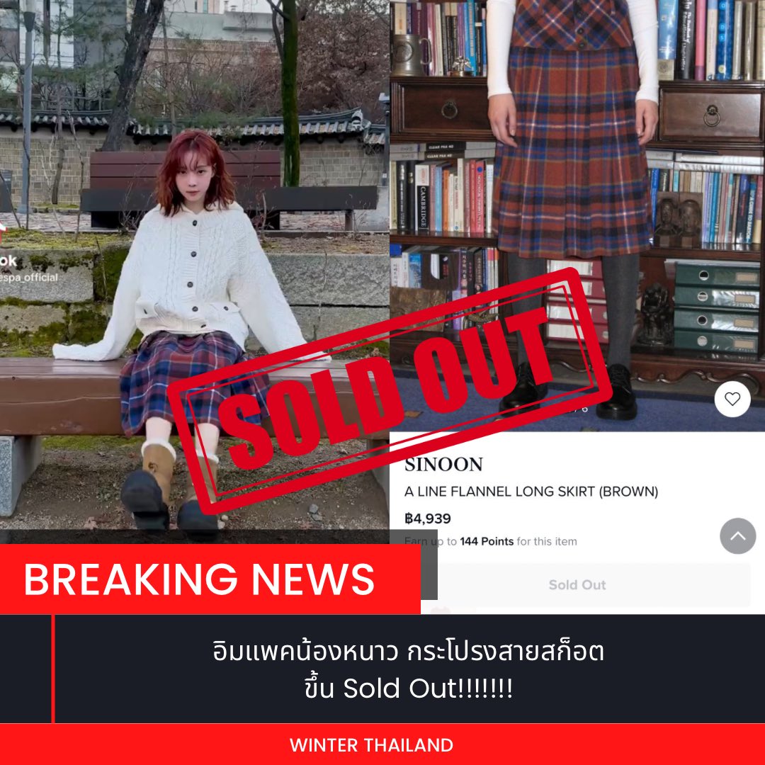 กระโปรงยาวลายสก็อตของ SINOON ที่ WINTER ใส่ในคลิป Vlog Seoul SOLD OUT บนเว็บไซด์