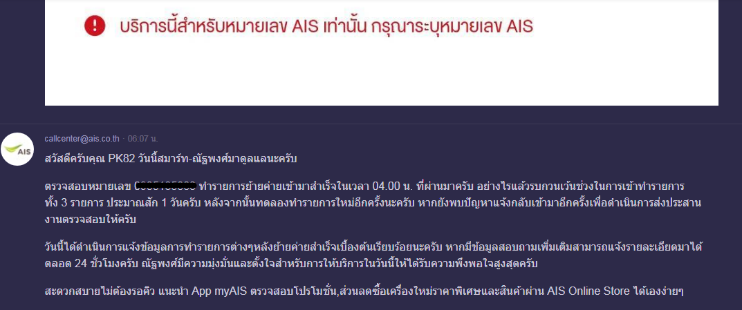 ย้ายค่ายมา AIS วันแรก จะใช้บริการบางอย่างไม่ได้นะครับ ต้องรอประมาณ 1 วัน