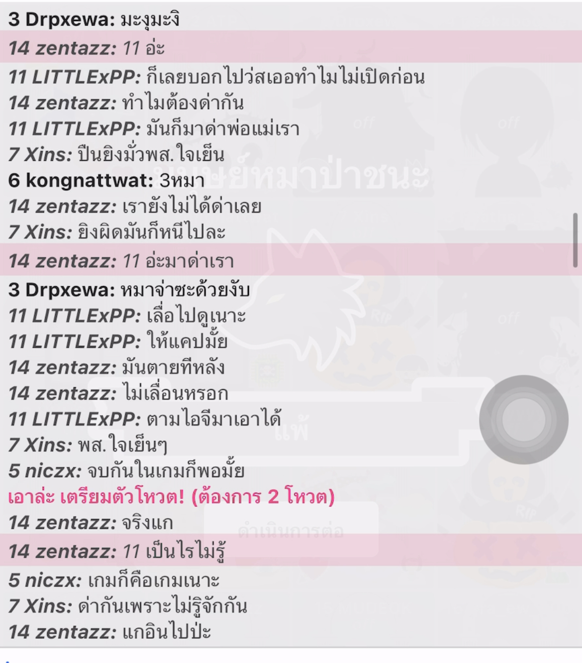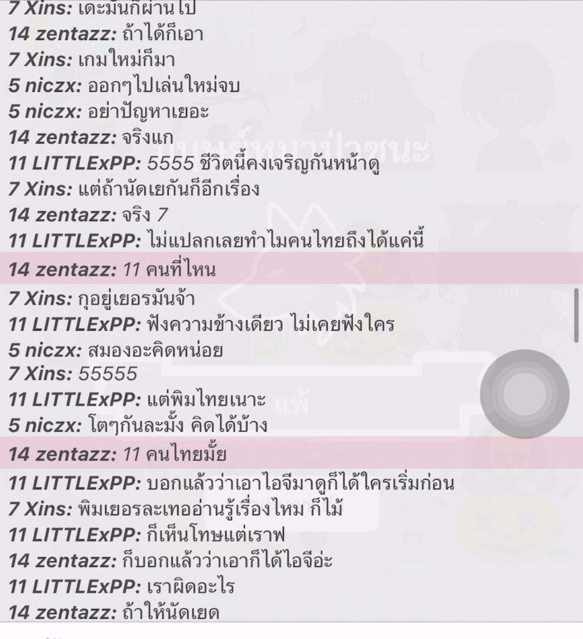 สุดท้ายนี้ เราเข้าใจสังคมเกม แต่ทำไมต้องถึงขนาดนี้ เราผิดอะไรมากหรอคะ เรื่องด่าเราก็เป็นคนนึงที่มีอารมณ์ร้อน จริงๆอยากขอโทษเขาด้วยซ้ำ แต่เขาไม่รู้สึกผิดเลย เราขอโทษไม่ลงจริงๆค่ะ ไม่เข้าใจแค่เรามองผิดบทบาท เราถึงกับต้องเจอขนาดนี้ ใครโอเค เราไม่รู้ แต่เราไม่โอเคจริงๆค่ะ