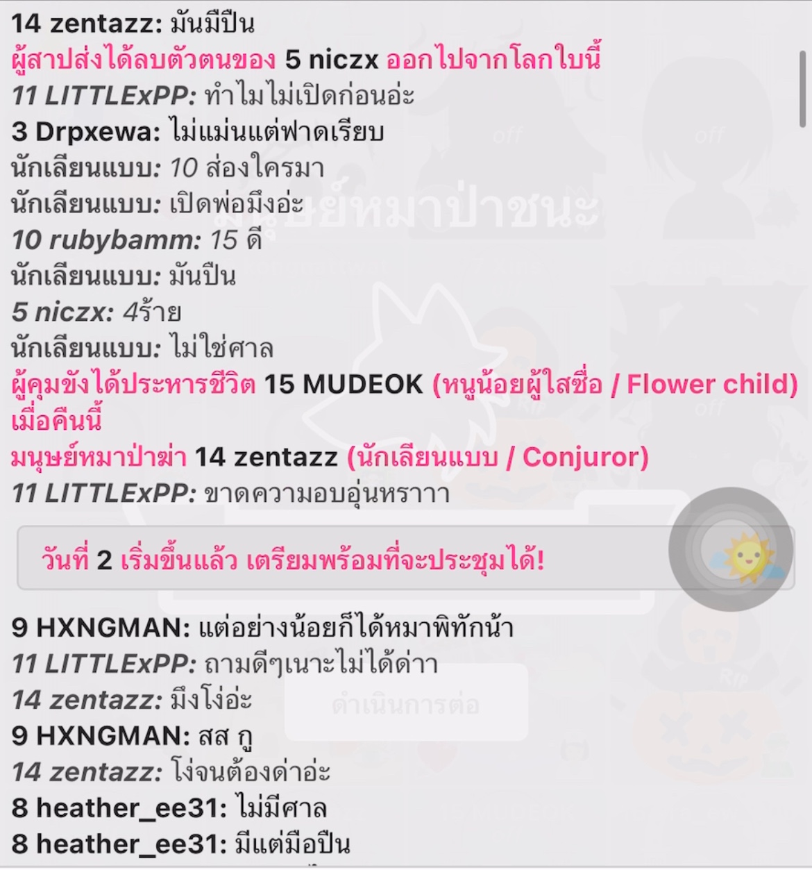หลังจากที่คนอื่นๆออกเกม เขาก็เริ่มกลายเป็นอีกคน ตอนแรกทำตัวเป็นเหยื่อเหมือนโดนกระทำ แต่พอคนอื่นไปปุ้ป ก็เริ่มกลับมาทำนิสัยเดิมๆ ช่วงหลังๆเราพนายามจะลดอารมณ์แล้วนะคะ แต่เขาก็ไม่สำนึกคิดอะไรไม่ได้เลย