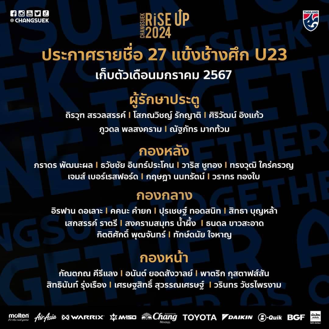 ⚽🇹🇭 "โจนาธาน" ติดครั้งแรก "เอกนิษฐ์" กลับแบ็ค ทีมชาติไทย ประกาศรายชื่อ 23 แข้งช้างศึก