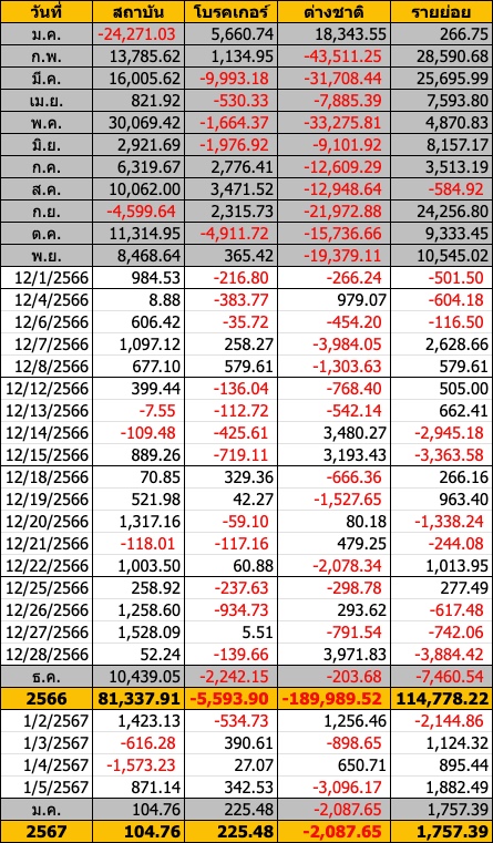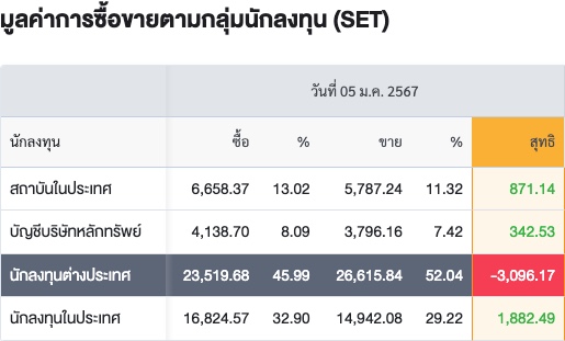Sinthorn Summary 5/1/2567 : ต่างชาติขายสุทธิ -3,096.17 ลบ.