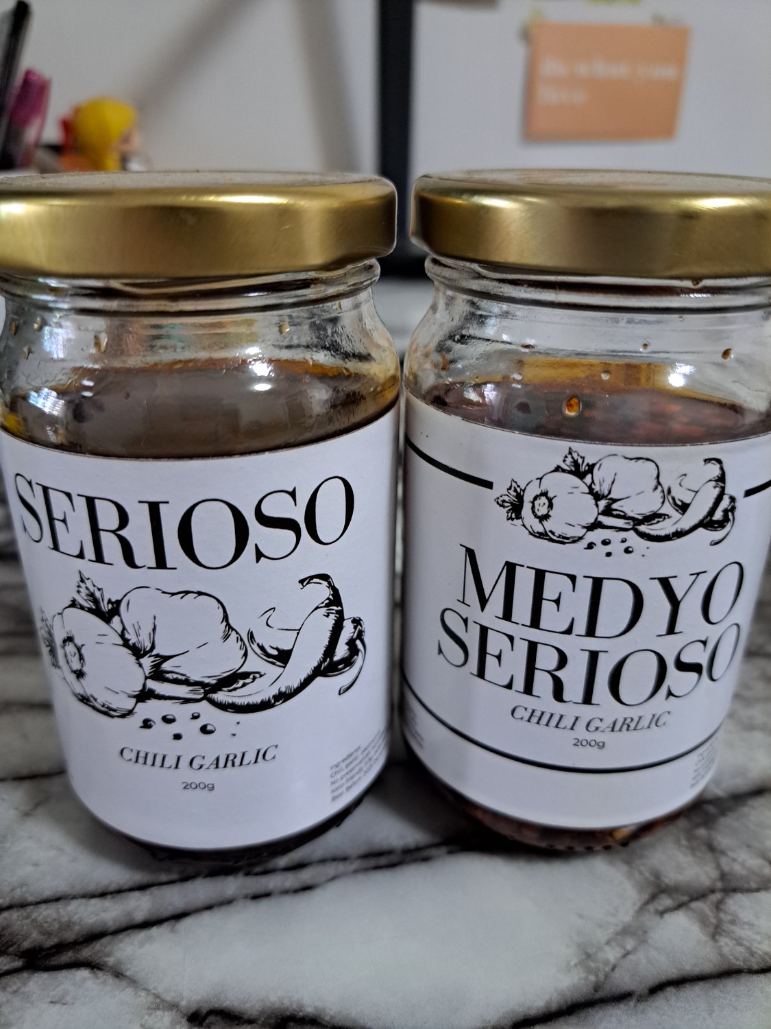 ลองชิมดูแล้ว มีกระเทียม จืด มัน ส่วนอีกขวดมีรสเผ็ด