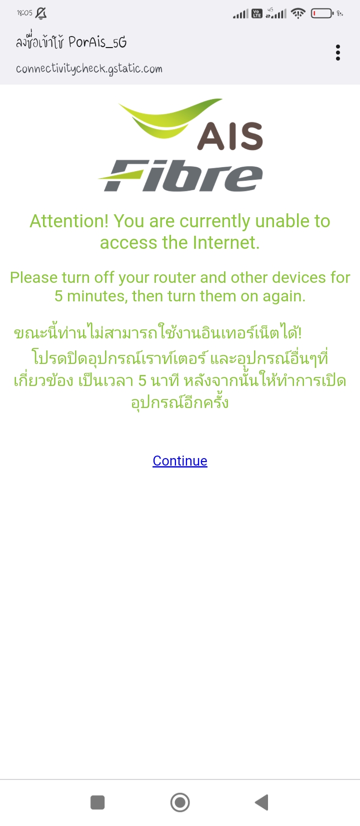 อินเทอร์เน็ตบ้าน ais fibre เล่นเน็ตไม่ได้ ผมได้แจ้งปัญหาทางแอพ myais แล้ว ครับ แล้วผมต้องแจ้งไปทางไหนอีกไหมครับ