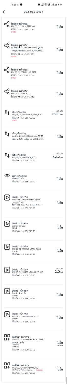 ผมใช้แพ็คเกจเน็ต 100GB ที่ความเร็ว 20Mbps (fup 384Kbps) 30 วัน (ต่ออายุอัตโนมัติ) ใช้งานได้ถึง 06/01/2569 23:59:59. เช็กเงิน เช็กเน็ตคงเหลือ หรือยกเลิกแพ็กเกจที่ tmvh.co/check (ไม่เสียค่าเน็ต) ช้ามาก