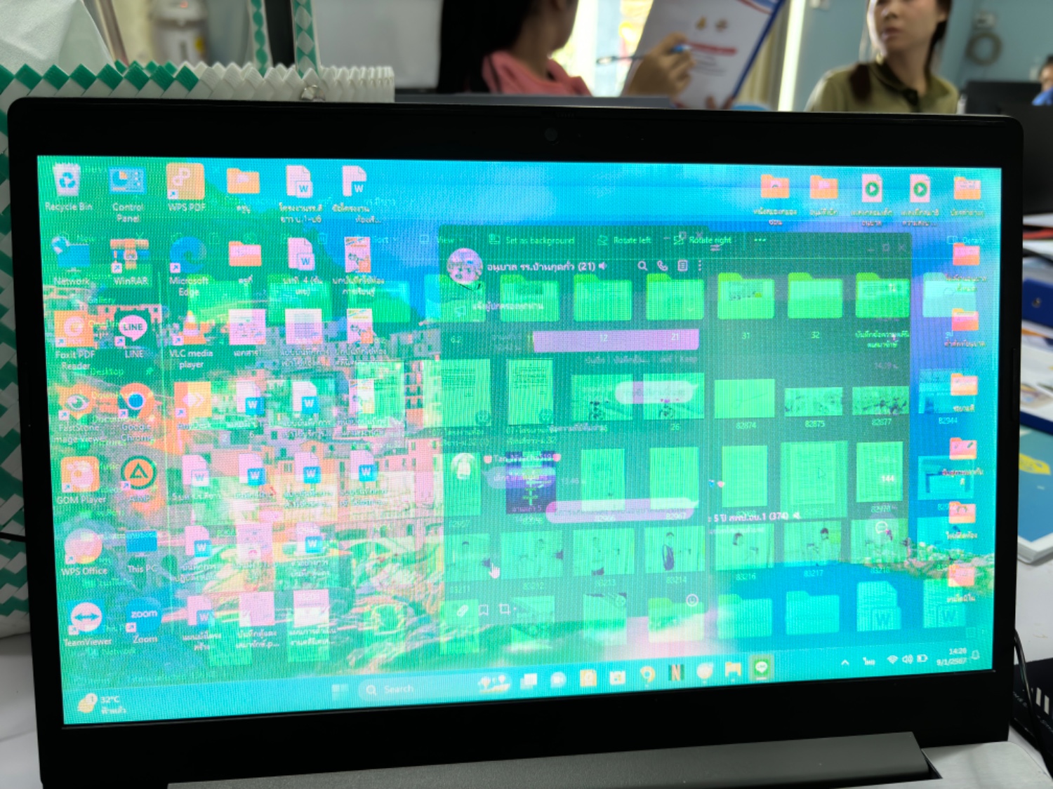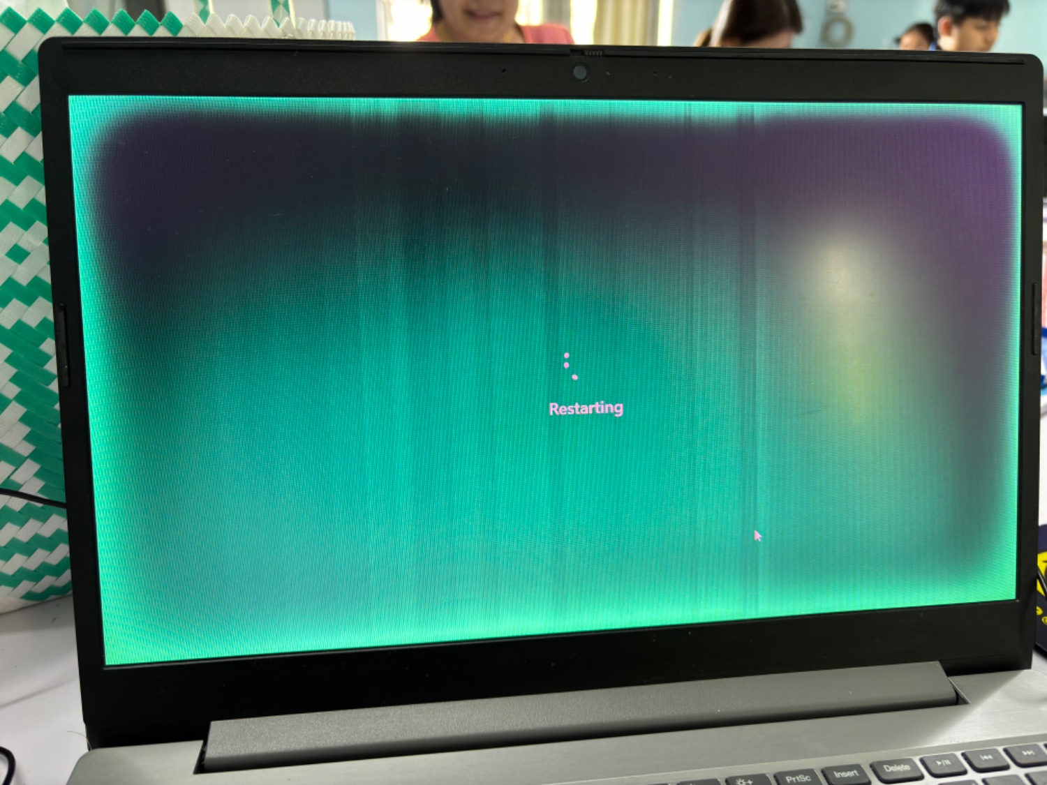 โน๊ตบุ๊ค Lenovo ขึ้นสีเส้นเขียวๆ