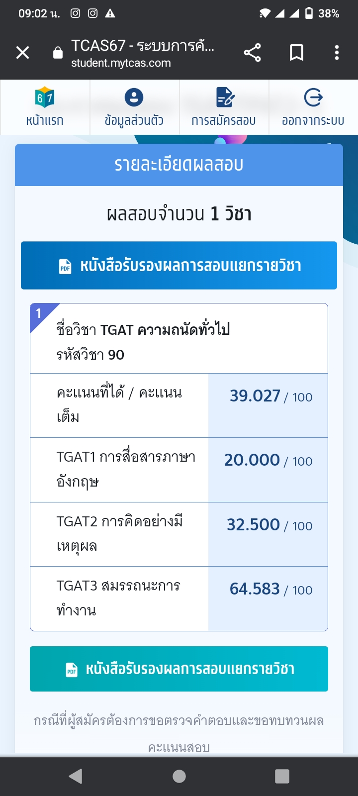 คะแนน tgat เท่านี้สามารถยื่นรอบ2ได้มั้ยคะ