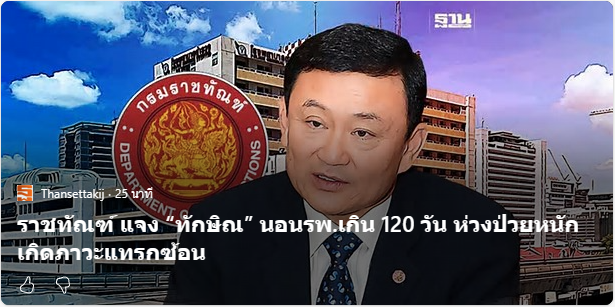 ฮือฮา!! พระเอกดัง โพสต์ชื่นชมทักษิณ ไม่สนใครจะว่ายังไง!! จากกรณีที่ ศาลฎีกามีคำสั่งว่า การรักษาตัวที่โรงพยาบาลตำรวจ “ไม่ชอบด้วยกฎหมาย” และ ไม่นับว่าเป็นการบังคับโทษตามกฎหมาย จึงมีคำสั่งให้