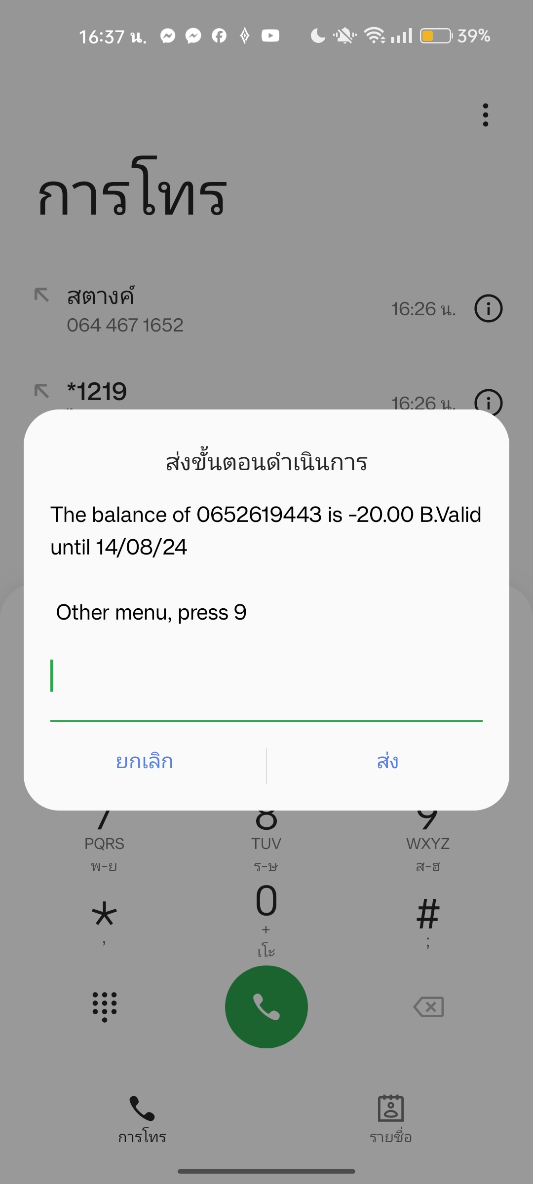 เติมเงินมือถือ แต่ตำนวนเงินในซิมไม่เพิ่ม