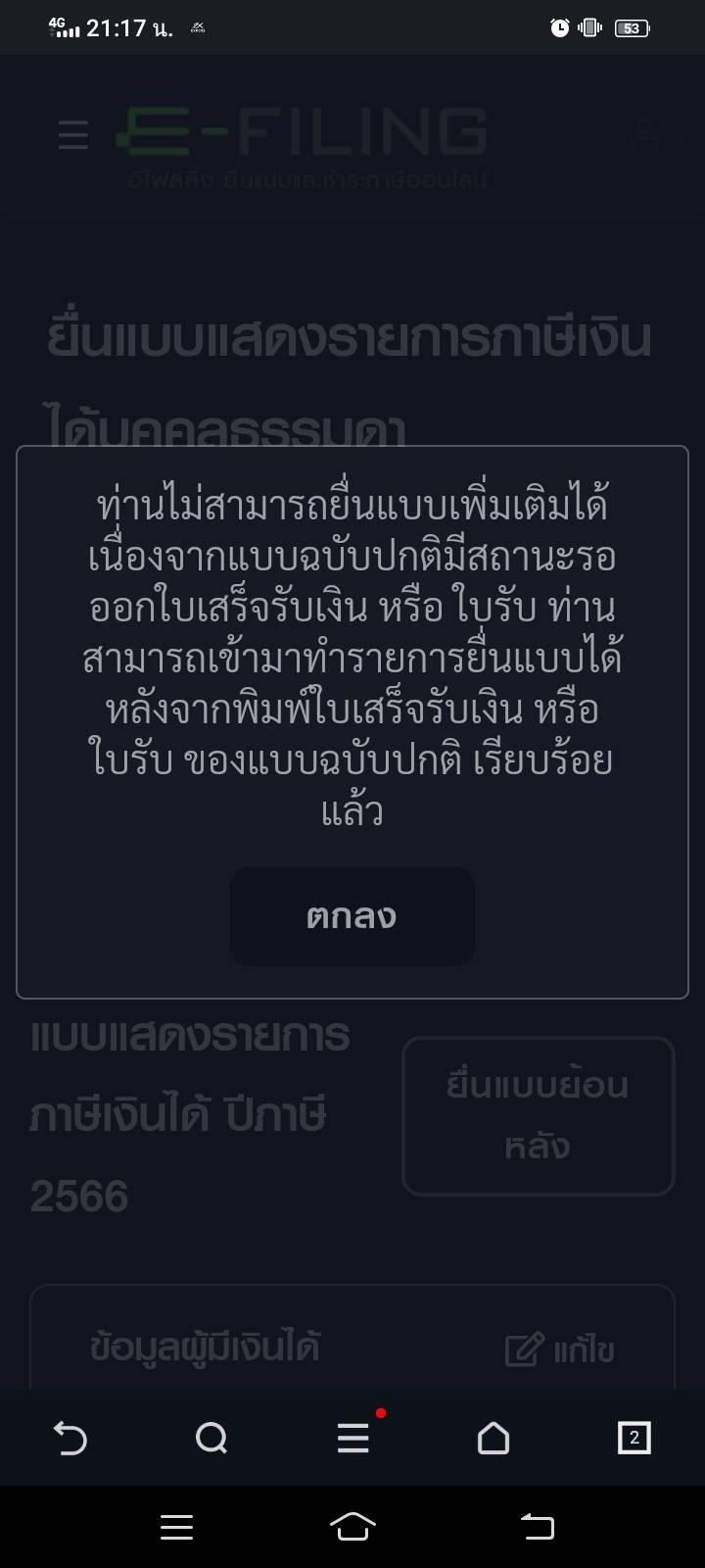 เรายื่นภาษีผิด สามารถยื่นใหม่ได้มั๊ยคะ แต่หน้าจอมันขึ้นแบบนี้