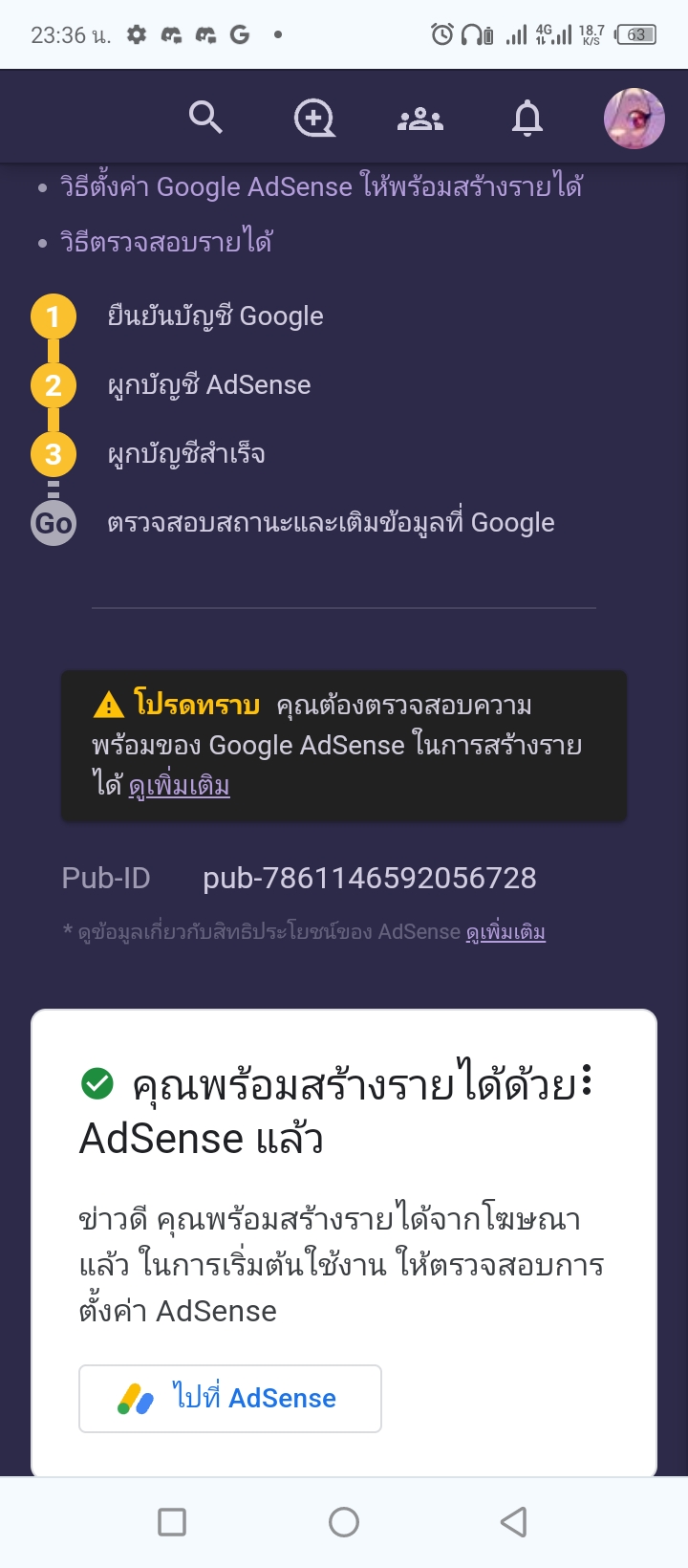 ถ้าตั้งใจทำ ก็สำเร็จได้ จขกท. ได้ศึกษา และได้สมัคร Google Adsense ในวันที่ 9 เมษายน 2568 บางครั้งไม่เข้าใจก็สอบถามสมาชิกและโพสต์ถามบ้าง เมื่อเกิดปัญหาแบบนี้ ต้องแก้ยังไงหาข้อมูลเพิ่มเติม ผ่านยูทูปบ้าง