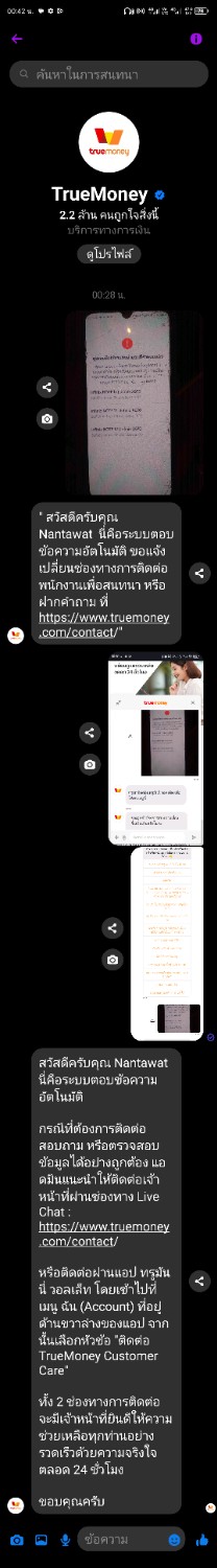 สวัสดีครับท่านสมาชิกหมายเลข 7934050 เจ้าหน้าที่ขอข้อมูลทางหลังไมค์ โดยส่งข้อความมายัง TrueMoney Customer Care เพื่อตรวจสอบรายละเอียดให้ก่อนนะครับ