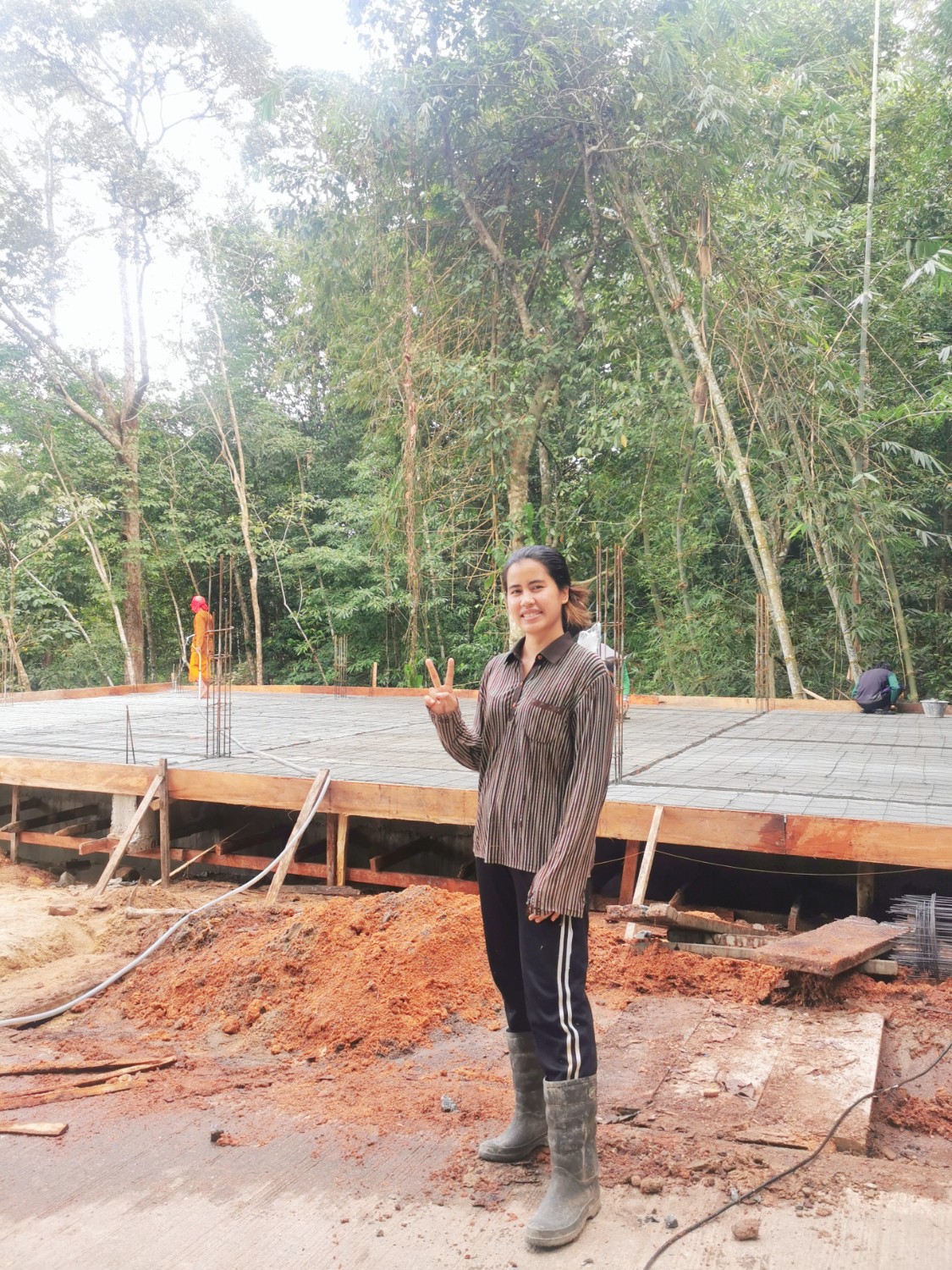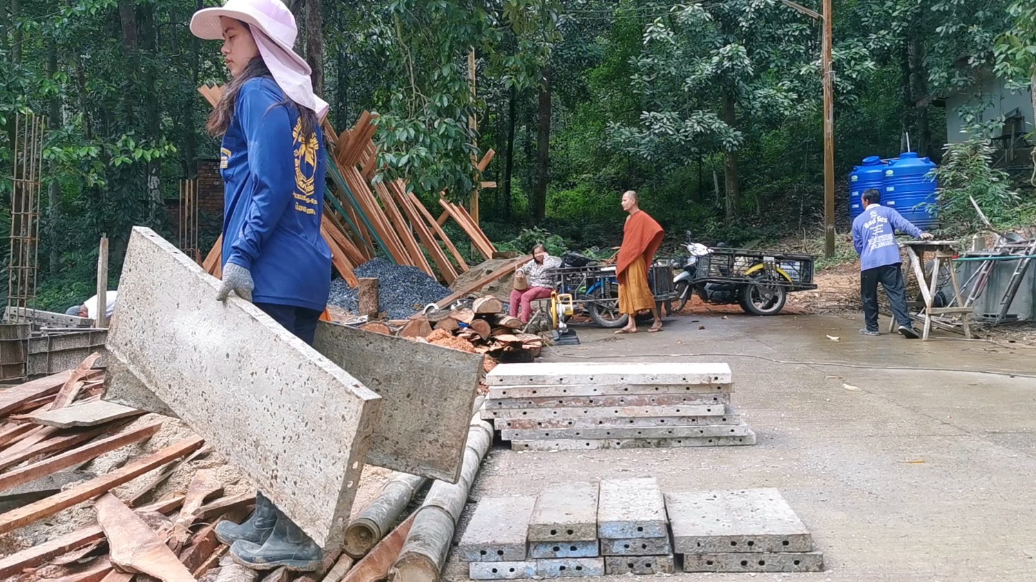 สาวภาคกลางช่วยสร้างศาลาสำนักสงฆ์ภาคใต้