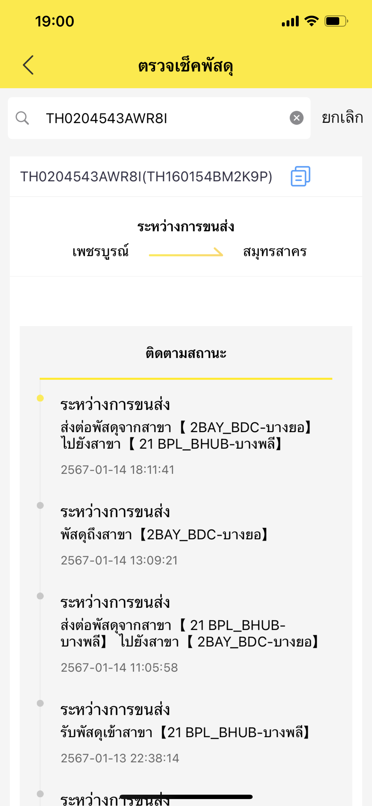 จากสาขาบางพลี ไปสาขาบางยอ แล้วถึงสาขาบางยอ ส่งกลับมาสาขาบางพลีอีกรอบเพื่ออะไรครับ ฝากติดตามหน่อยครับ TH0204543AWR8I