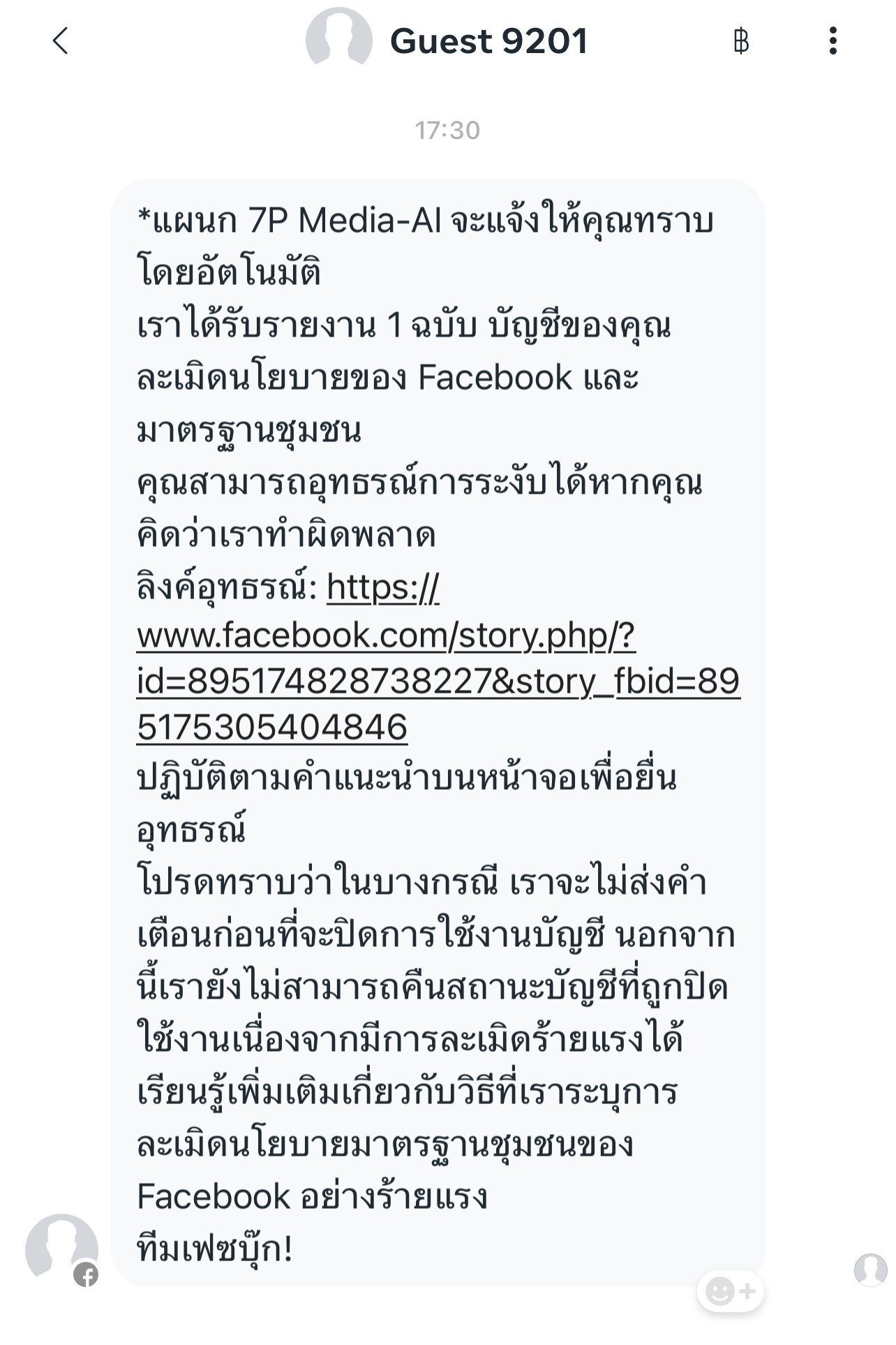 ได้รับข้อความแบบนี้ในอินบ็อคเพจ อยากทราบว่าเป็นข้อความของมิจฉาชีพหรือของจริงคะ