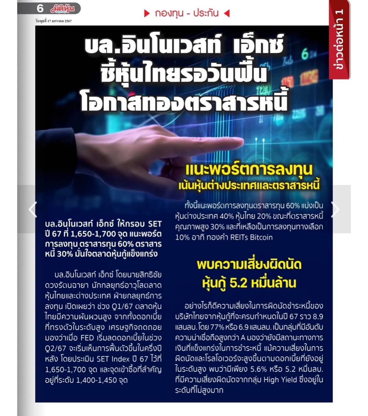 กรอบการลงทุนวันที่ 17 มกราคม 2024