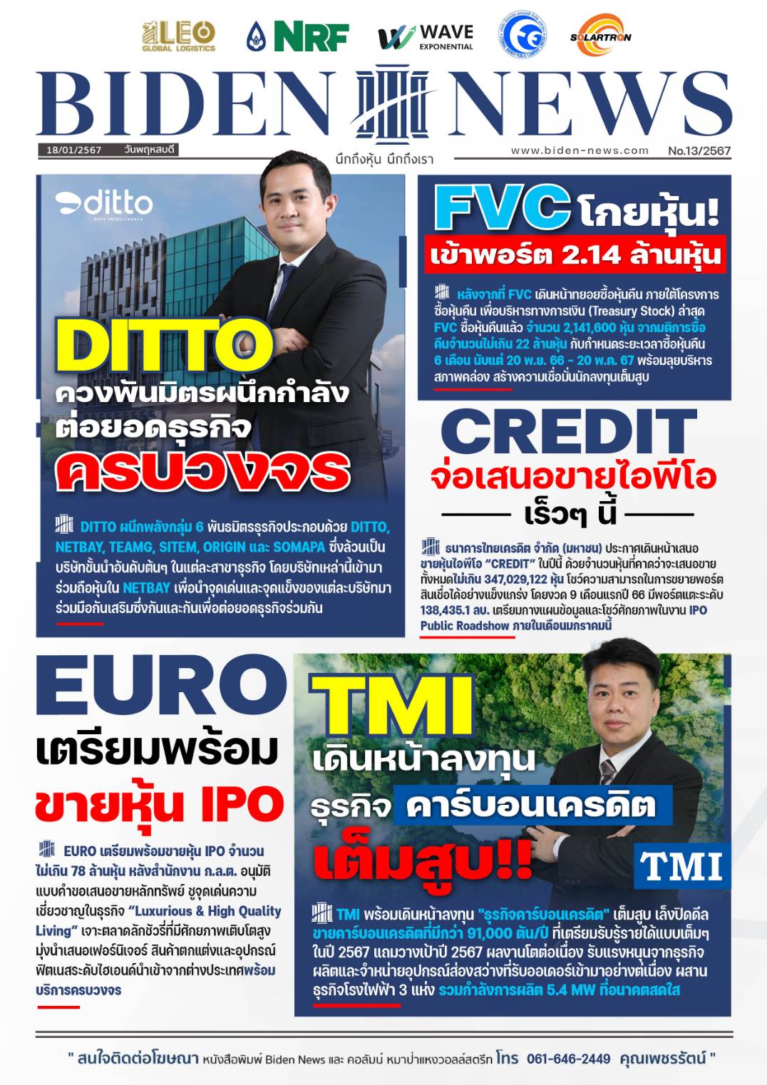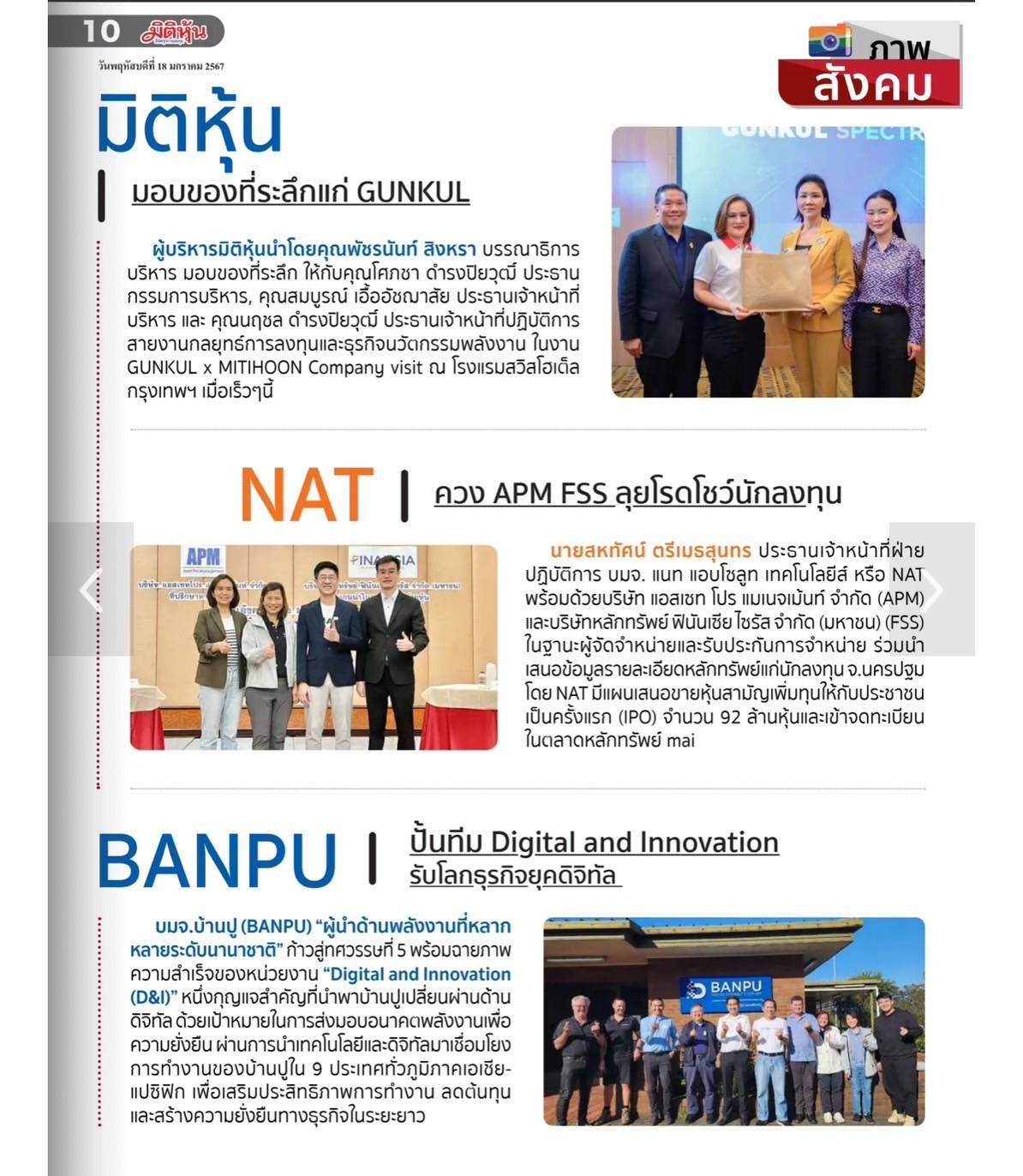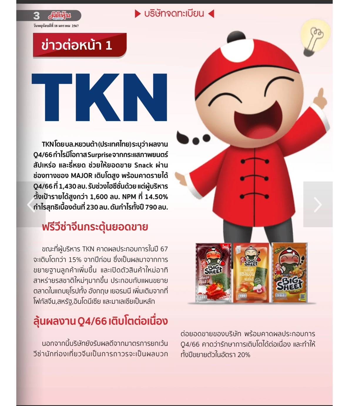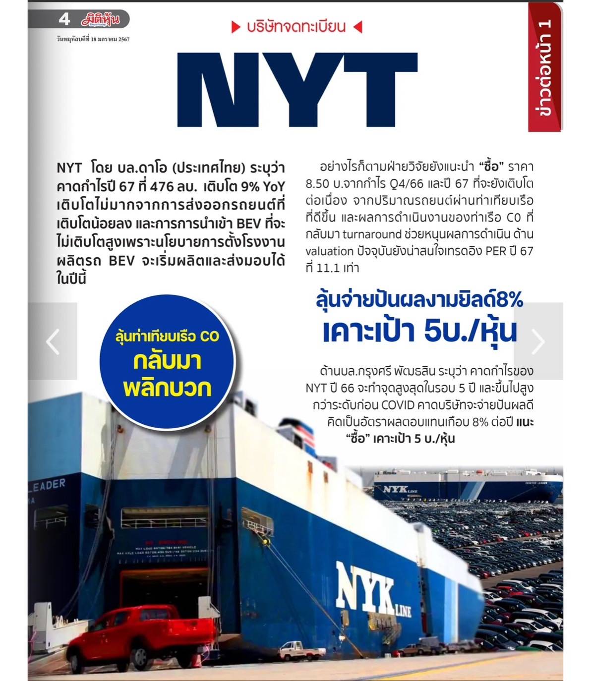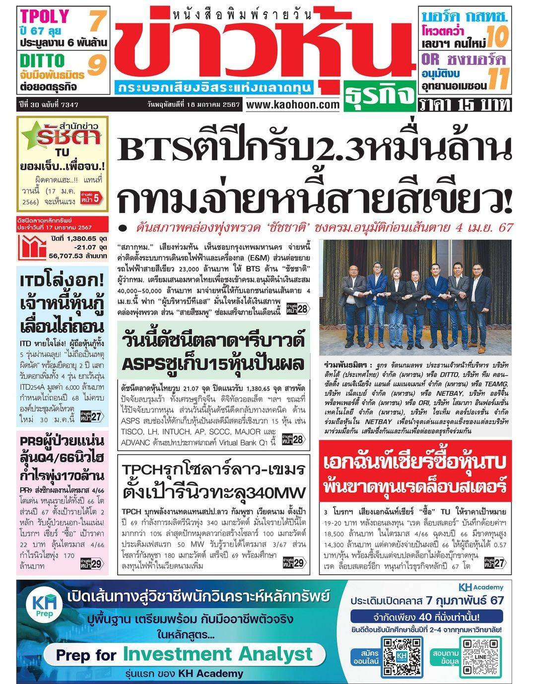 ข่าวการลงทุน วันที่ 18 ม.ค.2567