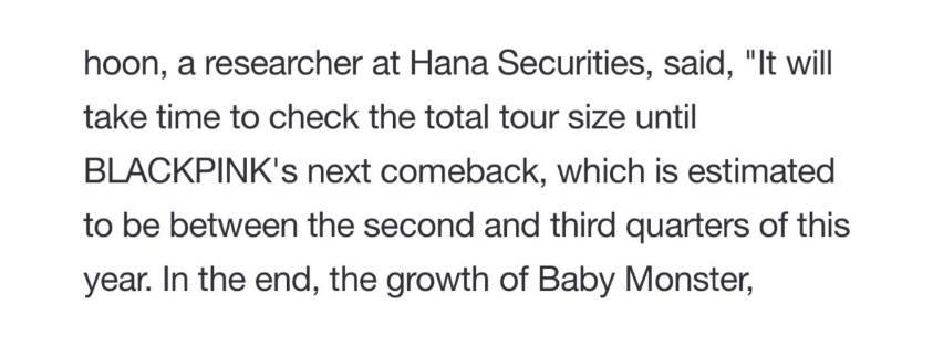 จากข้อมูลของ Hana Securities คาดว่า BLACKPINK จะคัมแบคในช่วงปลายปีนี้
