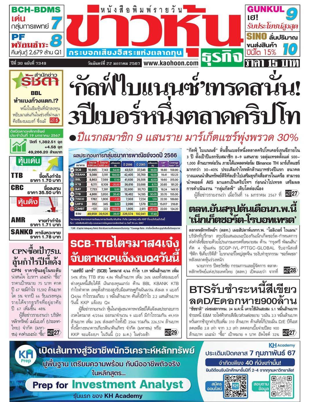 กรอบการลงทุน วันที่ 30 มกราคม 2024