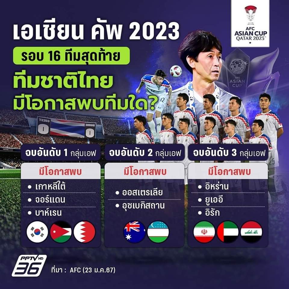 ⚽🇹🇭 "ทีมชาติไทย" ในรอบ 16 ทีมสุดท้าย มีโอกาสได้พบกับ "ทีมชาติ" ใดบ้าง??? . 📷 PPTVHD 36