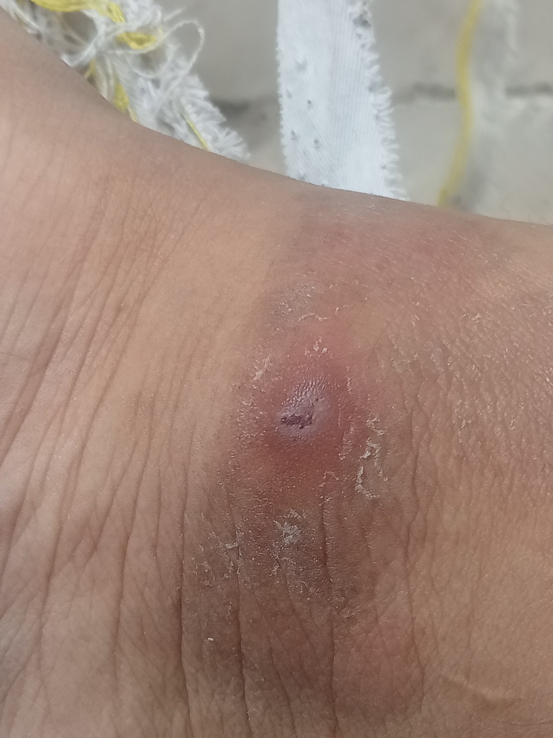 สวัสดีค่ะ ตาตุ่มแม่เราตอนแรกเป็นวงดำๆสามวง แล้วแม่เราไปแกะจนเป็นแผลตามภาพเลยค่ะ อยากทราบว่าจะมีโอกาสเป็นมะเร็งผิวหนังไหมคะ